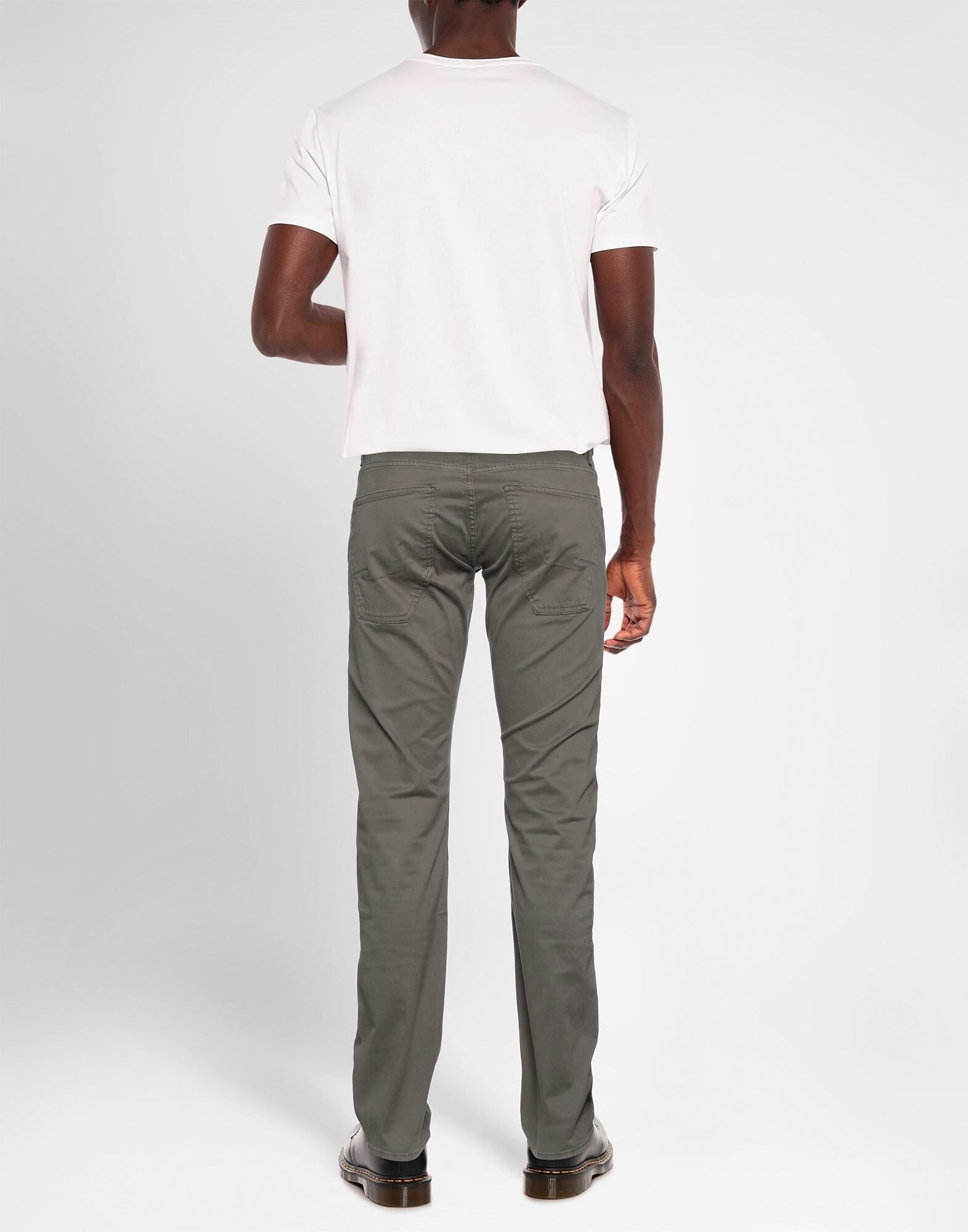 Ткань простого переплетения, логотип бренда, однотонный цвет, средняя посадка, зауженные штанины, стандартный крой, застежка на пуговицы, много карманов, эластичные, 5 карманов