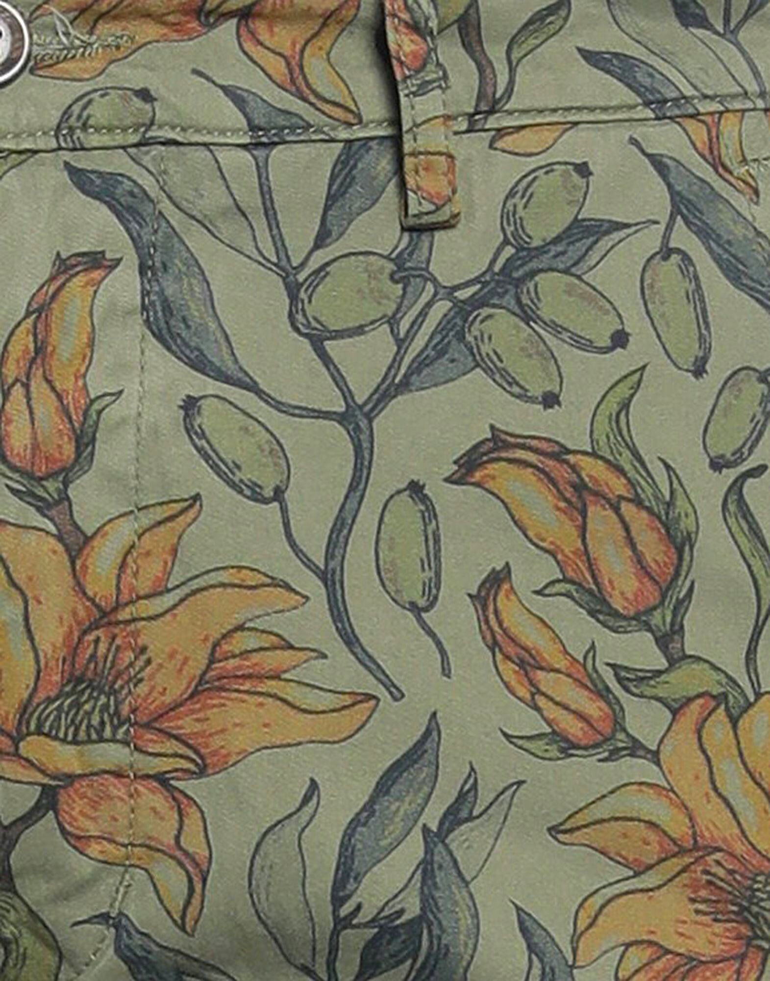 Габардин, логотип бренда, цветочный узор, средняя посадка, прямой крой, стандартная посадка, застежка на пуговицы, множество карманов, чиносы