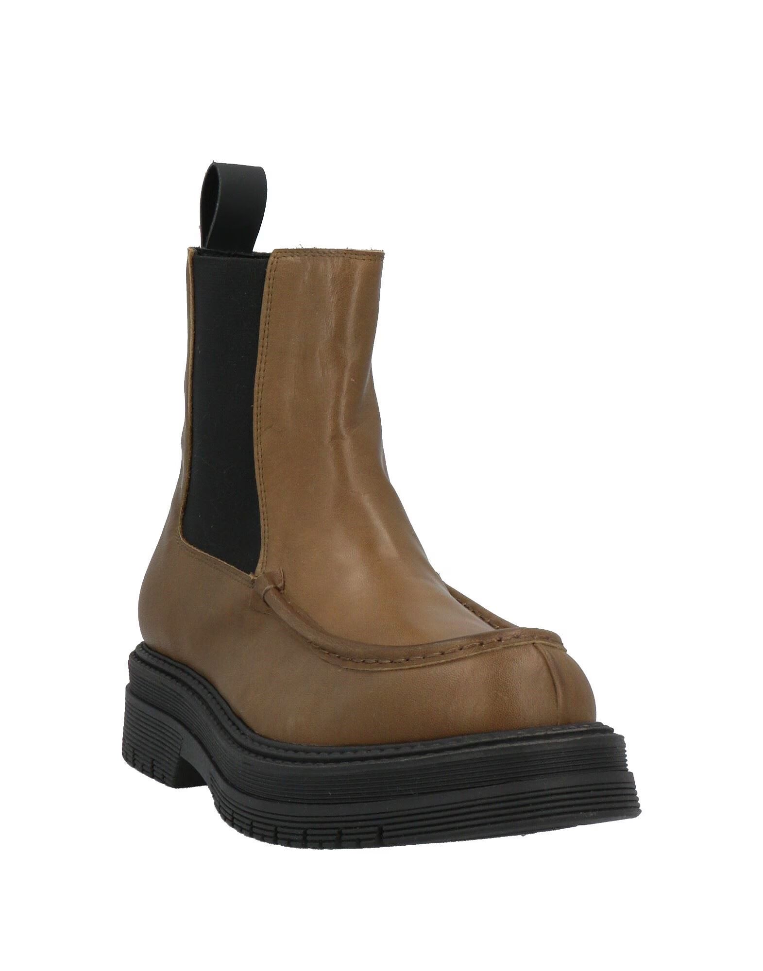 Кожа, контрастные вставки, двухцветная окраска, кожаная подкладка, эластичные вставки, закругленный носок, квадратный каблук, резиновая подошва с протектором, содержит нетекстильные части животного происхождения, массивные ботинки