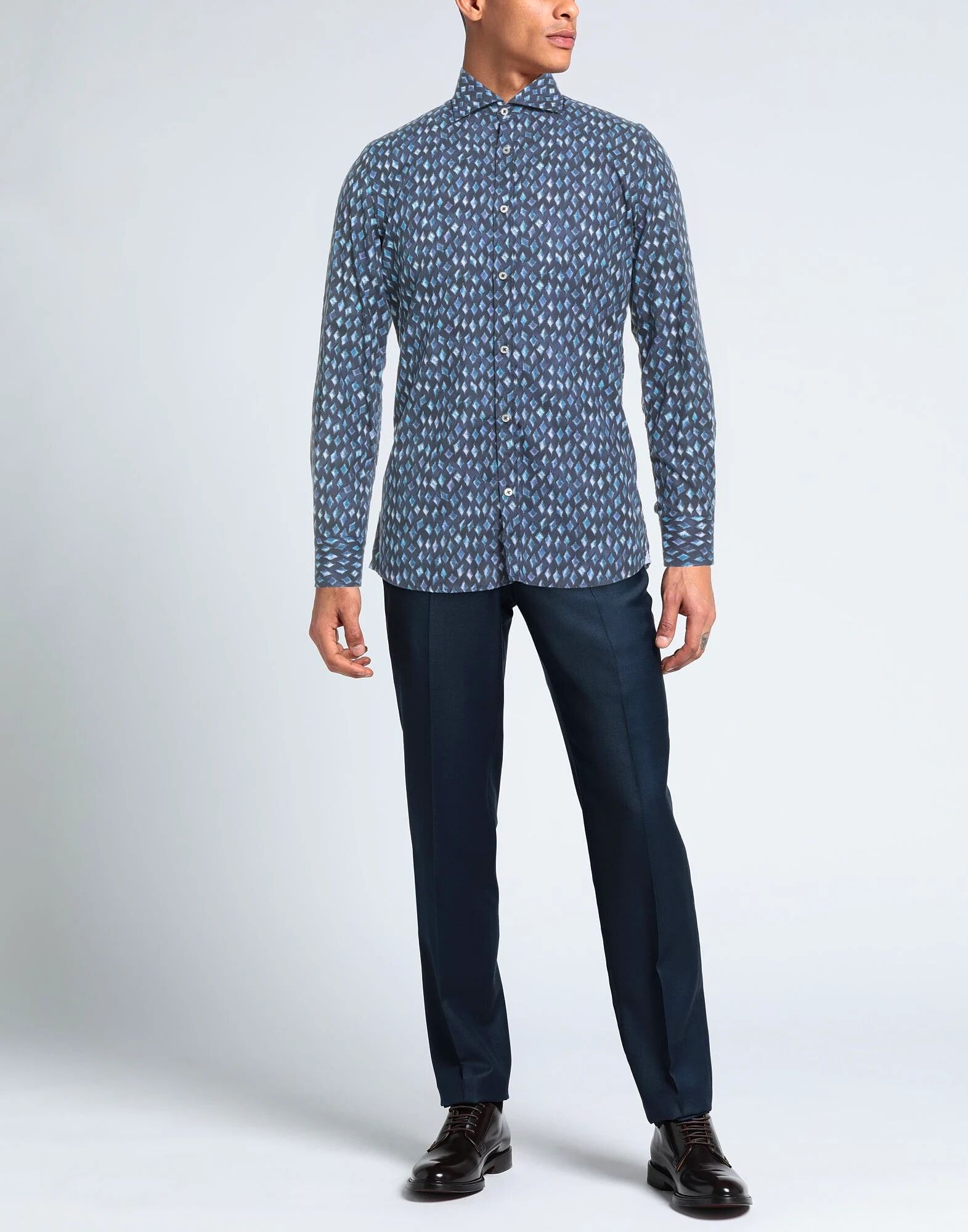 Рубашка приталенного кроя, тканая, многоцветная, без аппликаций, классический воротник, длинные рукава, манжеты на пуговицах, застежка на пуговицы, машинная стирка, не отбеливать, не сушить в сушильной машине