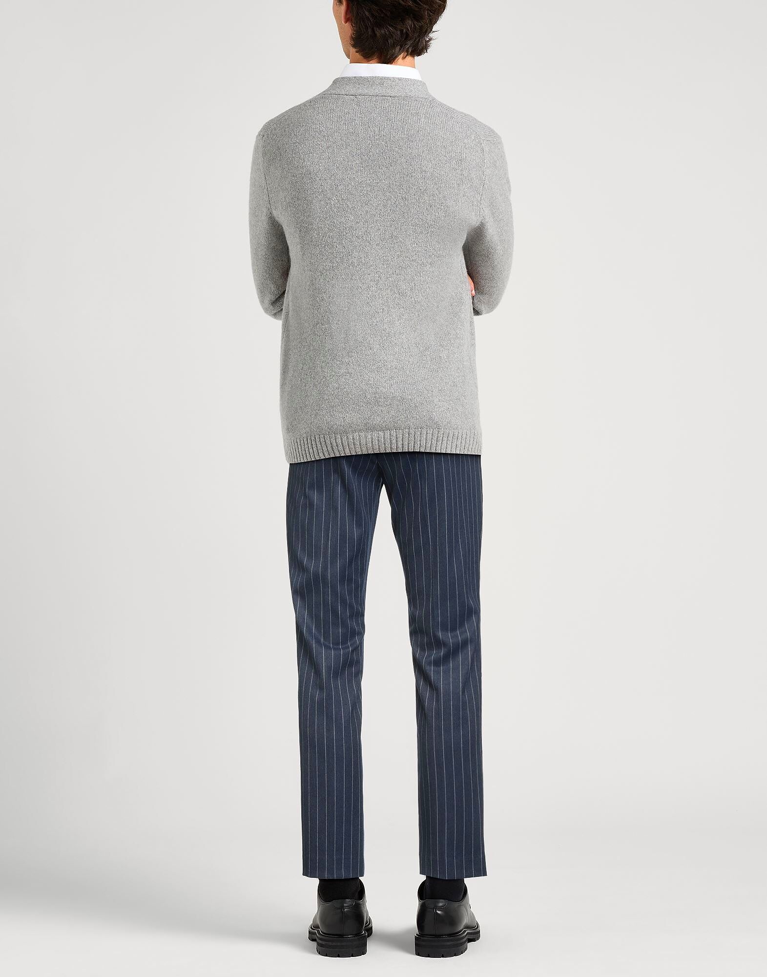 Классические брюки, фланель, эластичная ткань, в тонкую полоску, без аппликаций, средняя посадка, шлевки для ремня, зауженные штанины, стандартный крой, застежка на крючки, застежка на молнию, прорезные карманы, накладные карманы, химчистка, не отбеливать, не сушить в сушильной машине Создайте идеальный образ с этим дизайнерским комплектом, подходящим для деловых встреч или особых случаев