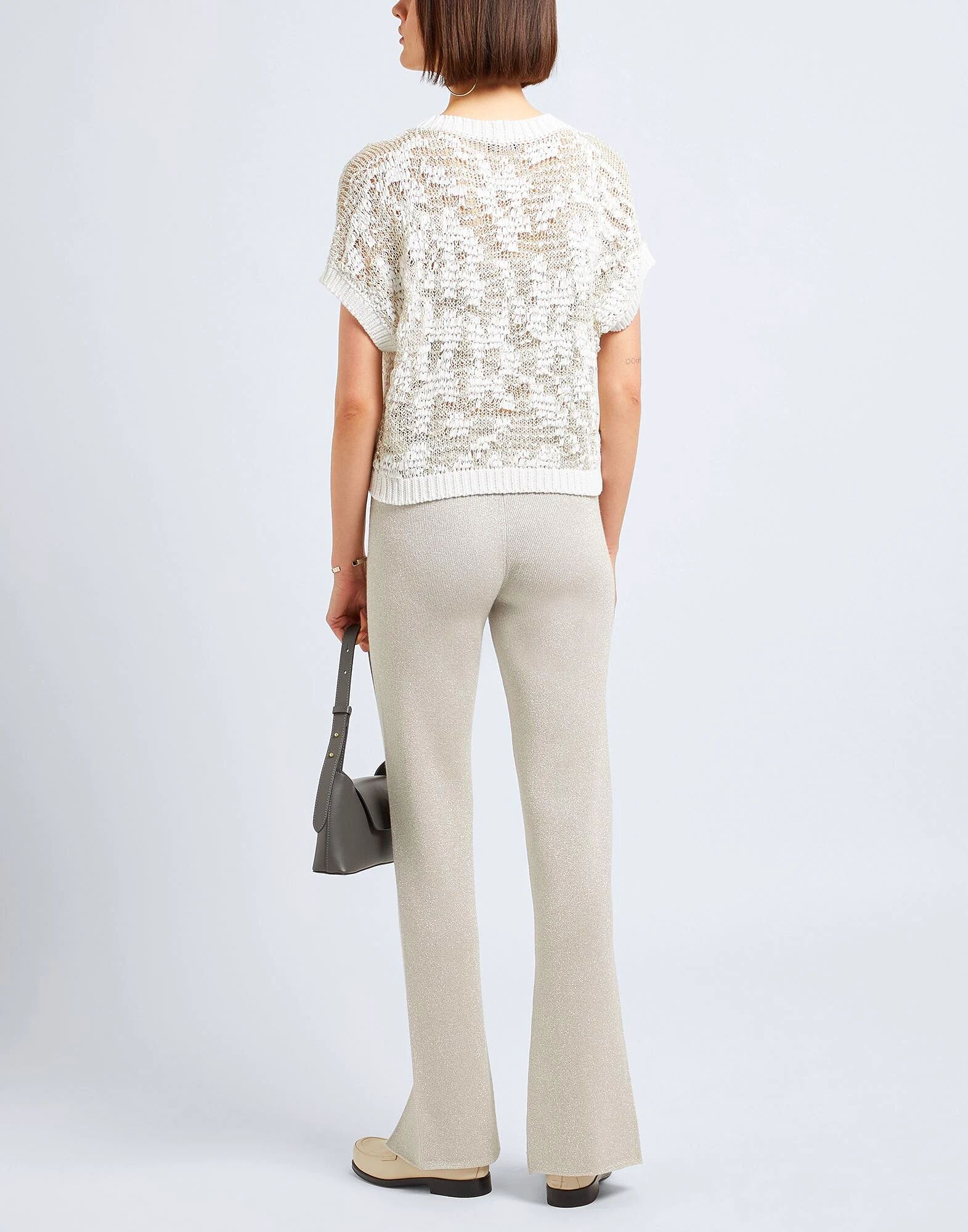 Трикотаж, люрекс, легкий трикотаж, без аппликаций, однотонный, высокая талия, эластичный пояс, прямые штанины, стандартный крой, без карманов, химчистка, не сушить в сушильной машине, не отбеливать, брюки