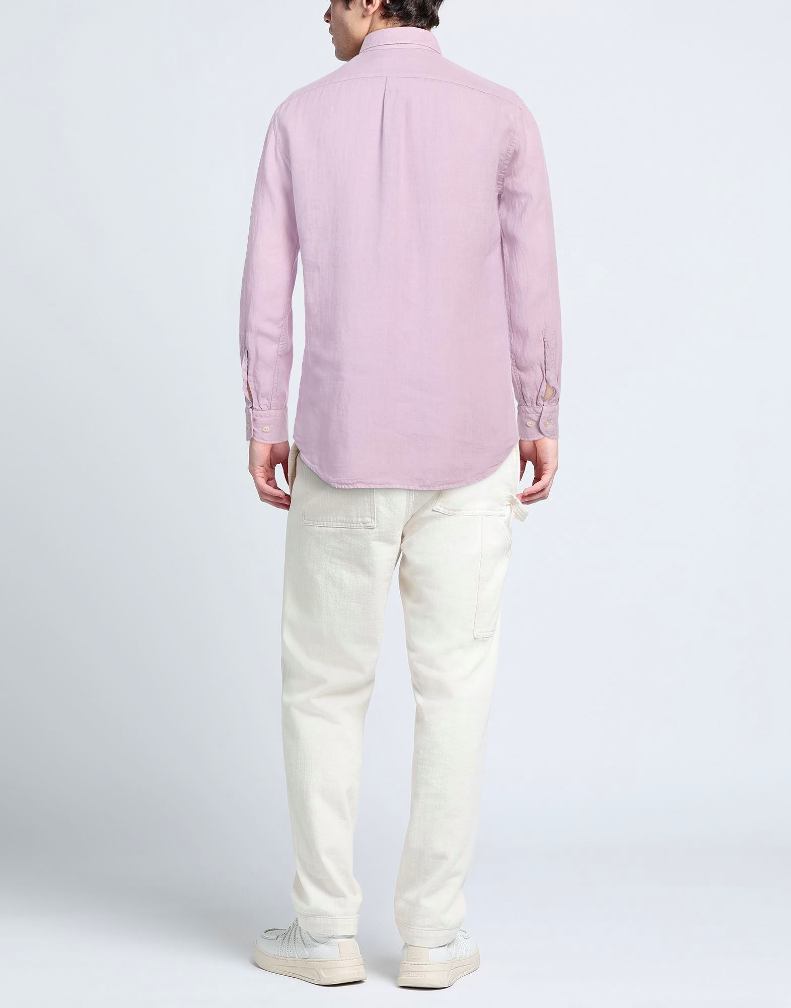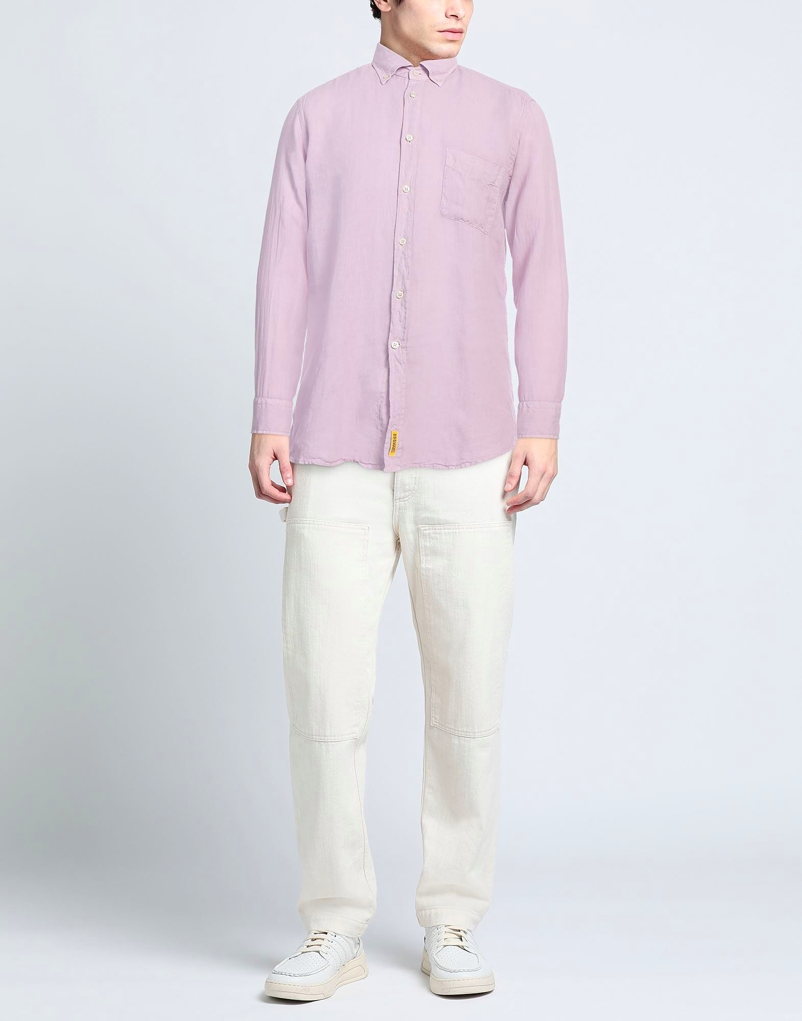 Рубашка стандартного кроя, лен, однотонная, с логотипом бренда, воротник на пуговицах, длинные рукава, манжеты на пуговицах, застежка на пуговицах, один нагрудный карман