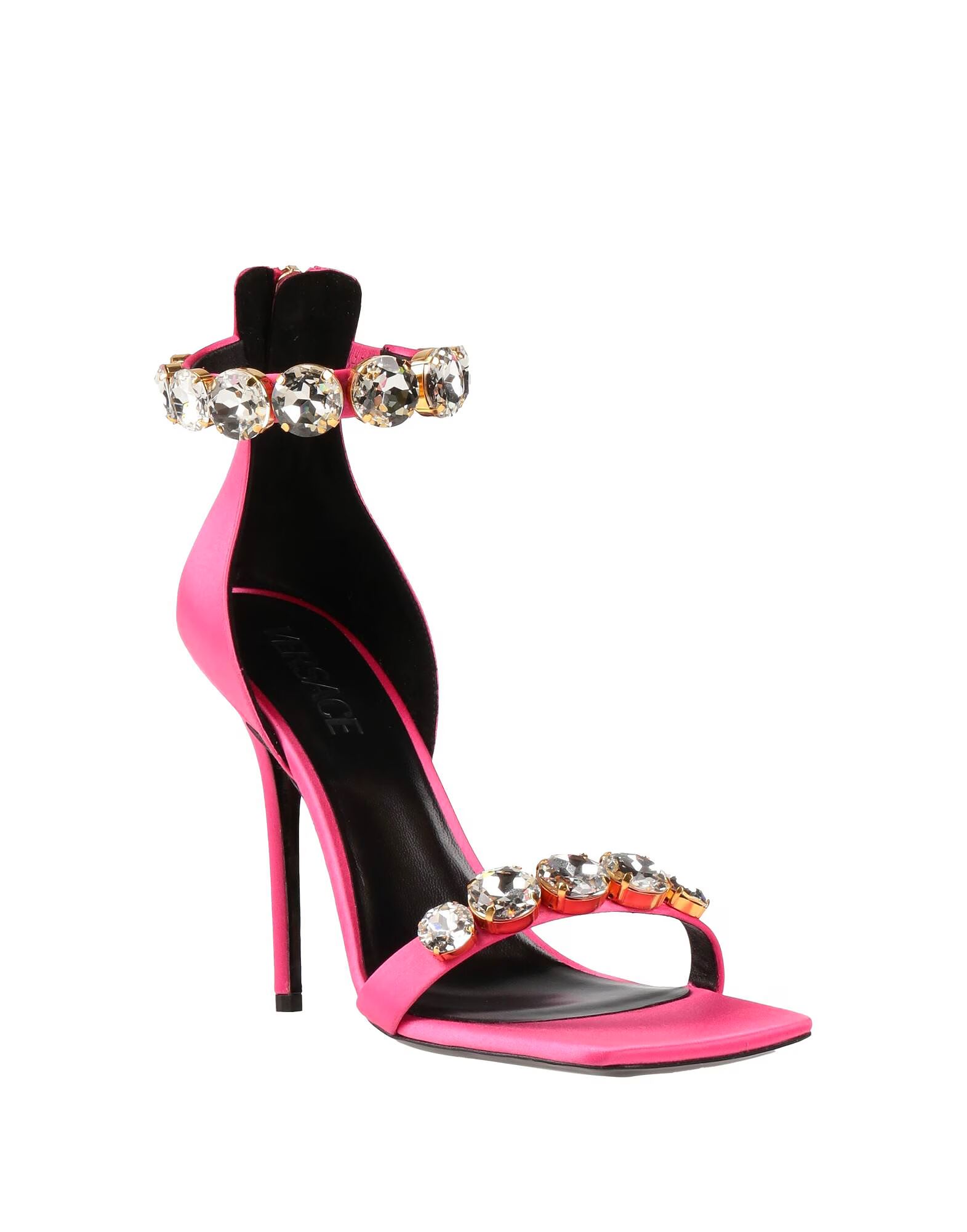 Сандалии с ремешком на щиколотке, атлас, однотонные, с аппликациями, кристаллами, кожаной подкладкой, застежкой-молнией, квадратным носком, острым каблуком, обтянутым каблуком, кожаной подошвой, содержат нетекстильные части животного происхождения Дополните образ стильными аксессуарами для вечеринки или выхода в свет