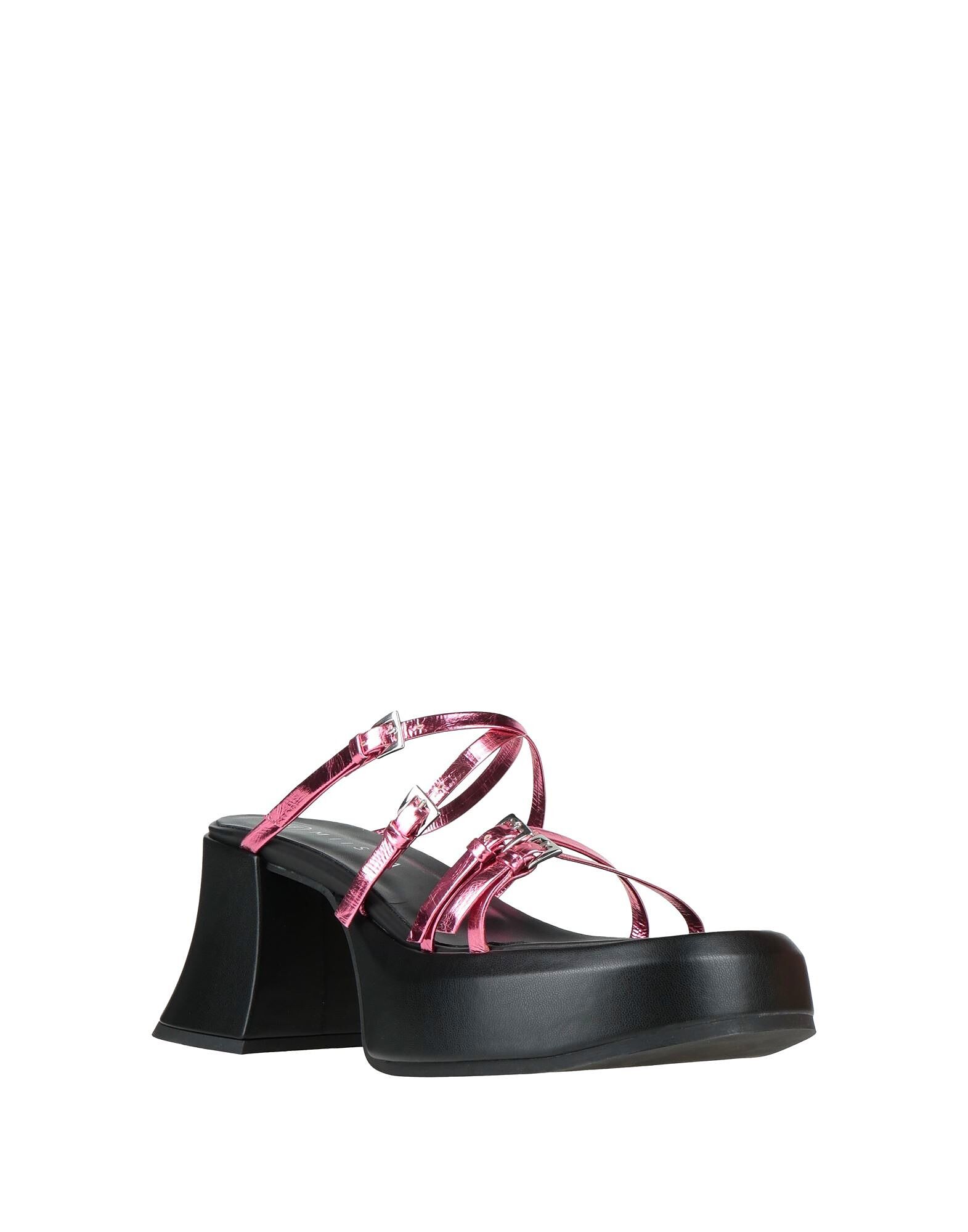 Сандалии с ремешком на щиколотке, кожа, металлизированная отделка, однотонные, без аппликаций, кожаная подкладка, ремешок на щиколотке с пряжкой, круглый носок, квадратный каблук, резиновая подошва, содержат нетекстильные части животного происхождения