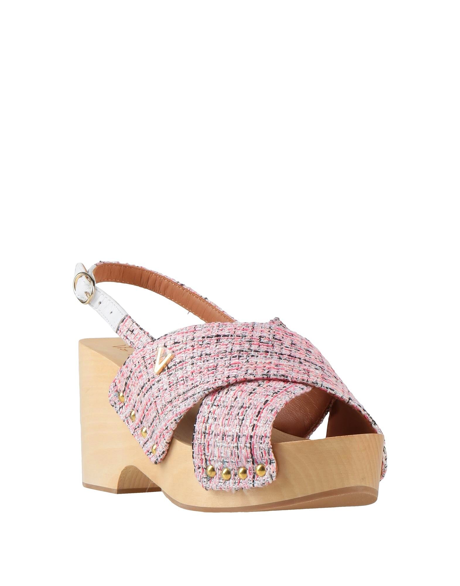 Сабо, твид, металлик, многоцветные, логотип бренда, застежка на пряжку, круглый носок, деревянная танкетка, резиновая подошва, без подкладки, содержат нетекстильные части животного происхождения