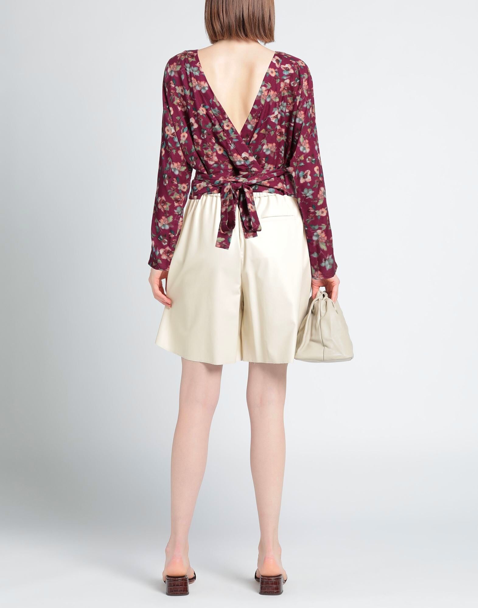 Топ, креп, цветочный принт, запах, открытая спина, круглый вырез, длинные рукава, машинная стирка, не отбеливать, не сушить в сушильной машине