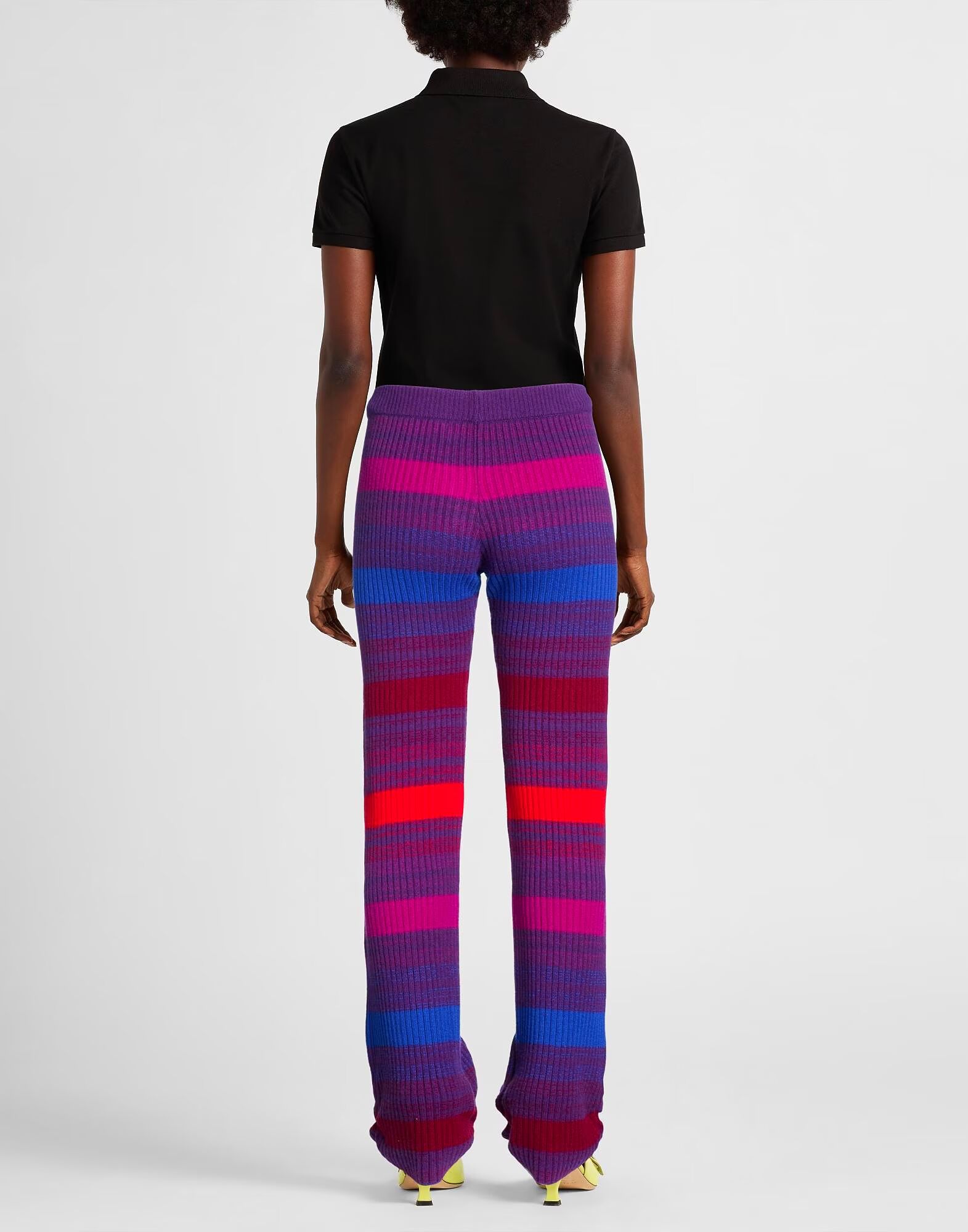 Брюки прямого кроя, трикотаж в рубчик, средней плотности, разноцветные, без аппликаций, высокая талия, эластичный пояс, стандартный крой, химчистка, не сушить в сушильной машине