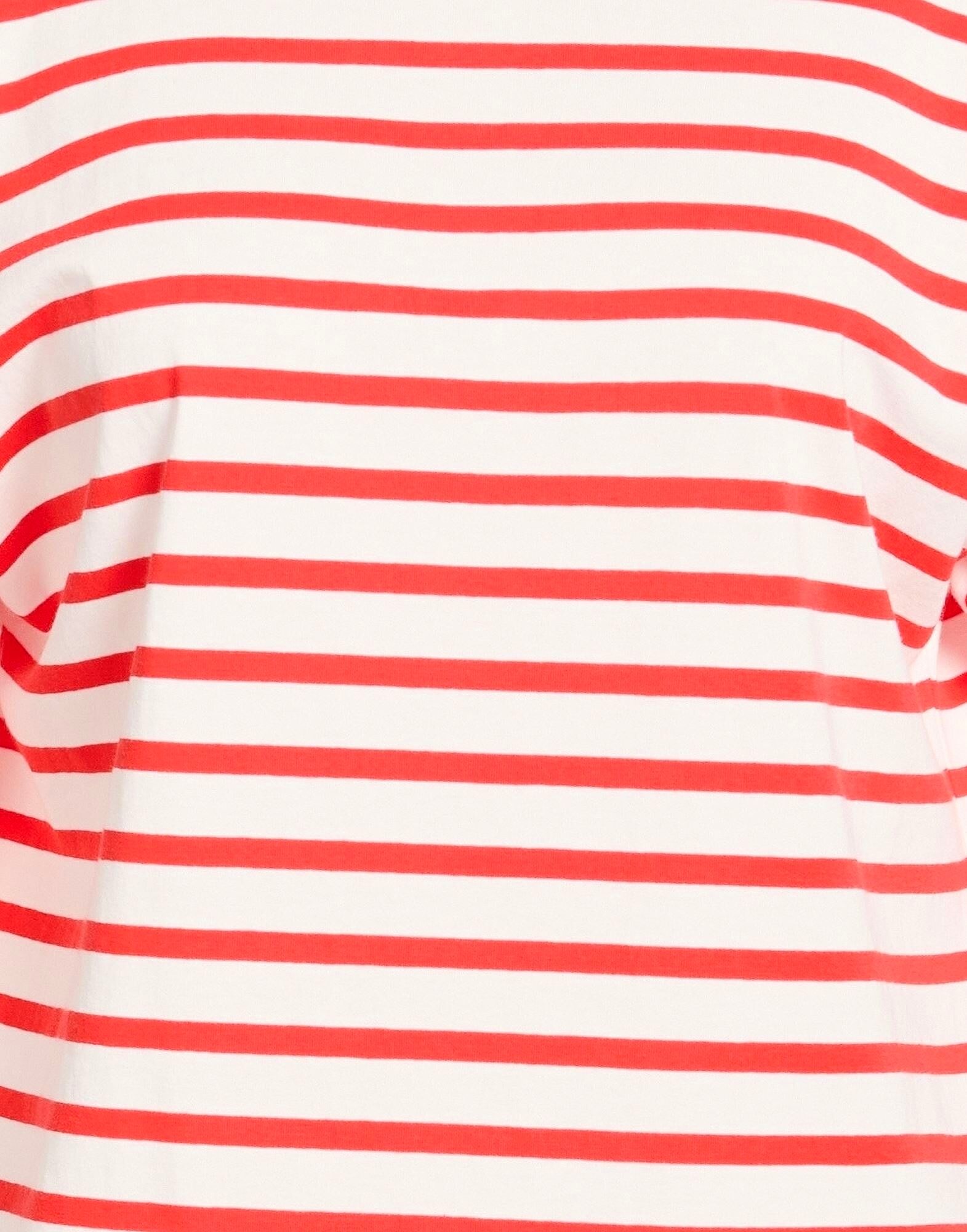 Футболка с принтом, трикотажная, в полоску, со сборками, вырез-лодочка, рукава 3/4, ручная стирка или химчистка, не отбеливать, не сушить в сушильной машине