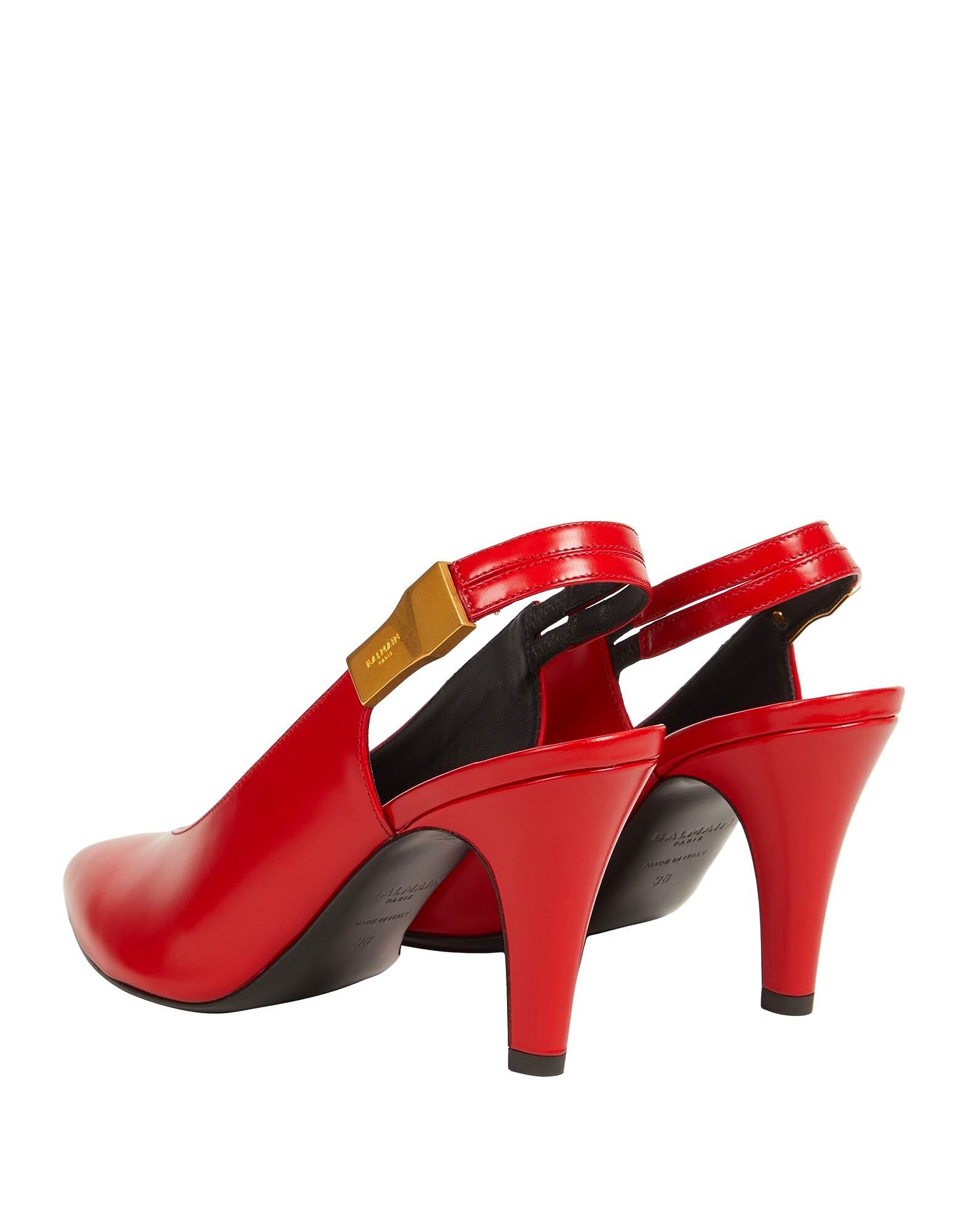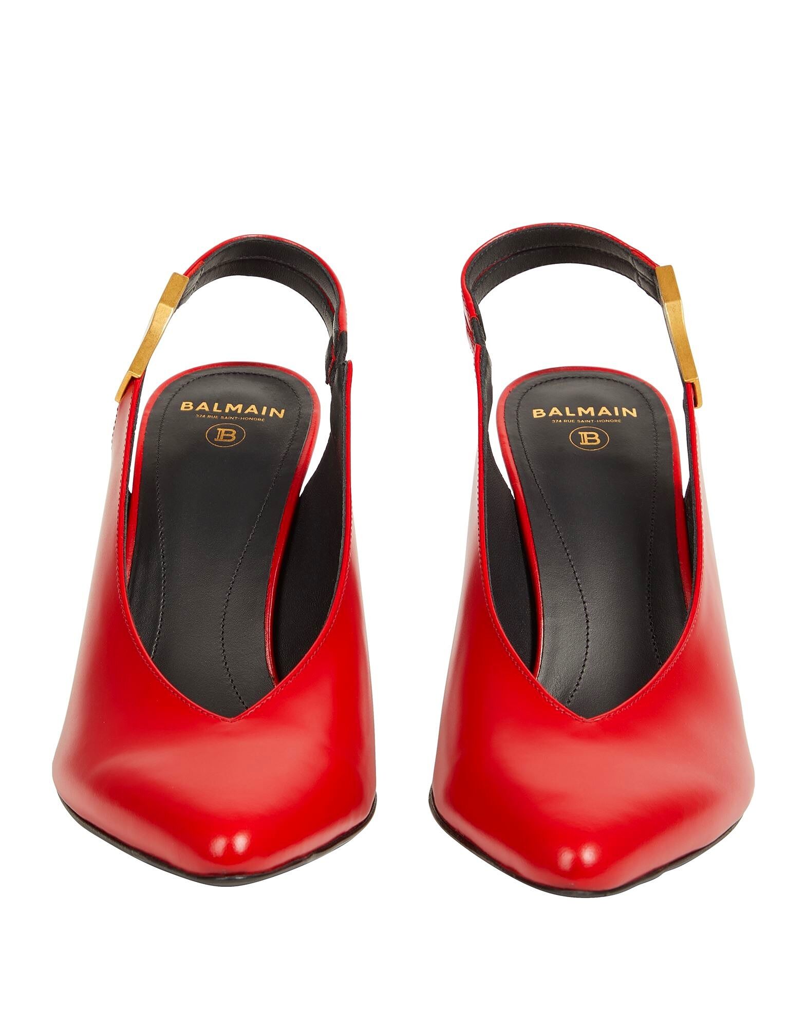 Туфли-лодочки с открытой пяткой, кожа, логотип бренда, однотонные с аппликациями, кожаная подкладка, эластичный ремешок, заостренный носок, конусообразный каблук, кожаная подошва, содержат нетекстильные части животного происхождения