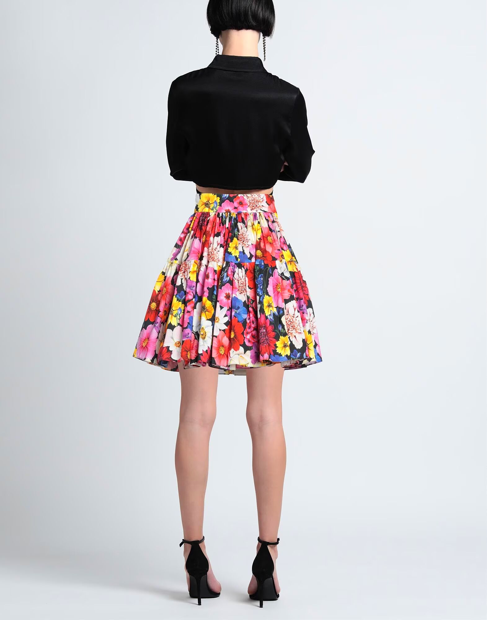 Поплин, логотип бренда, оборки, цветочный узор, без подкладки, застежка-молния, застежка на крючок и петлю, без карманов, расклешенный фасон