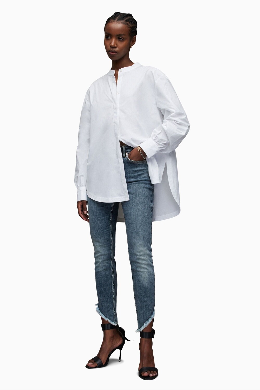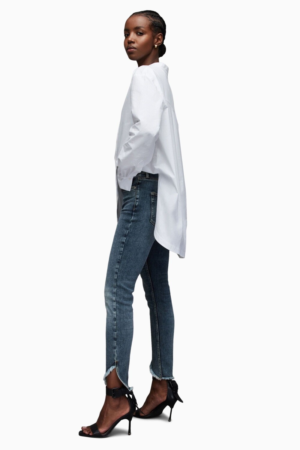 Синие джинсы AllSaints Dax с асимметричным низом All Saints, синий 11 440₽