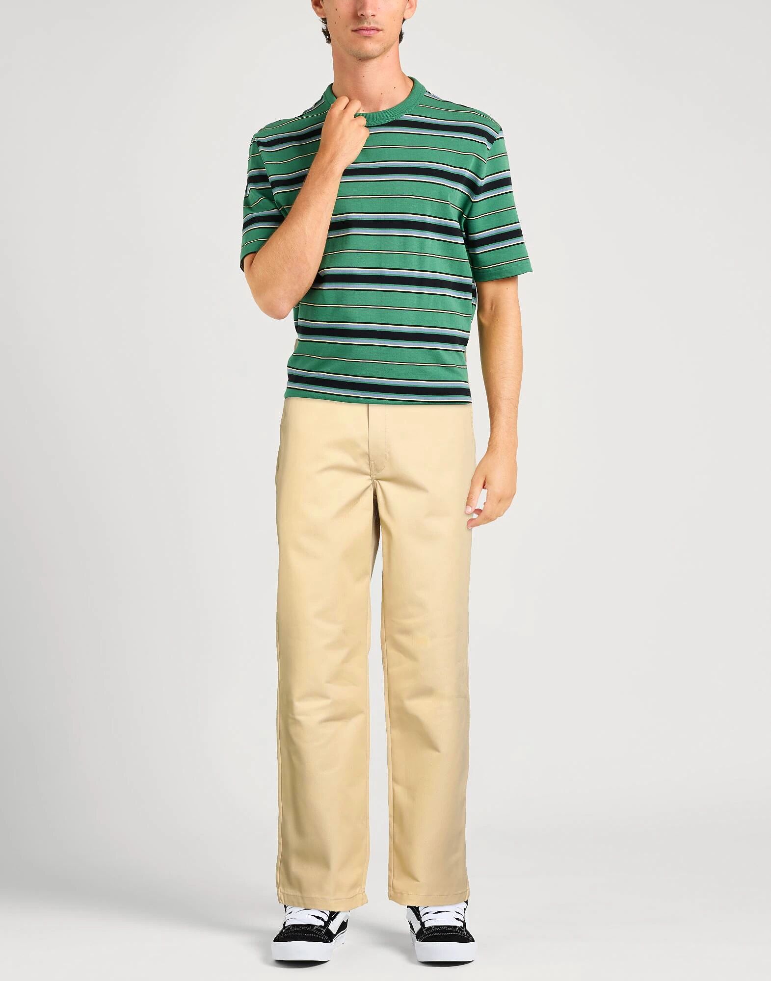 Брюки чинос, габардин, однотонные, с логотипом бренда, высокая талия, прямой крой, стандартная посадка, застежка на молнию, застежка на крючок, множество карманов, машинная стирка, не отбеливать, сушка в сушильной машине