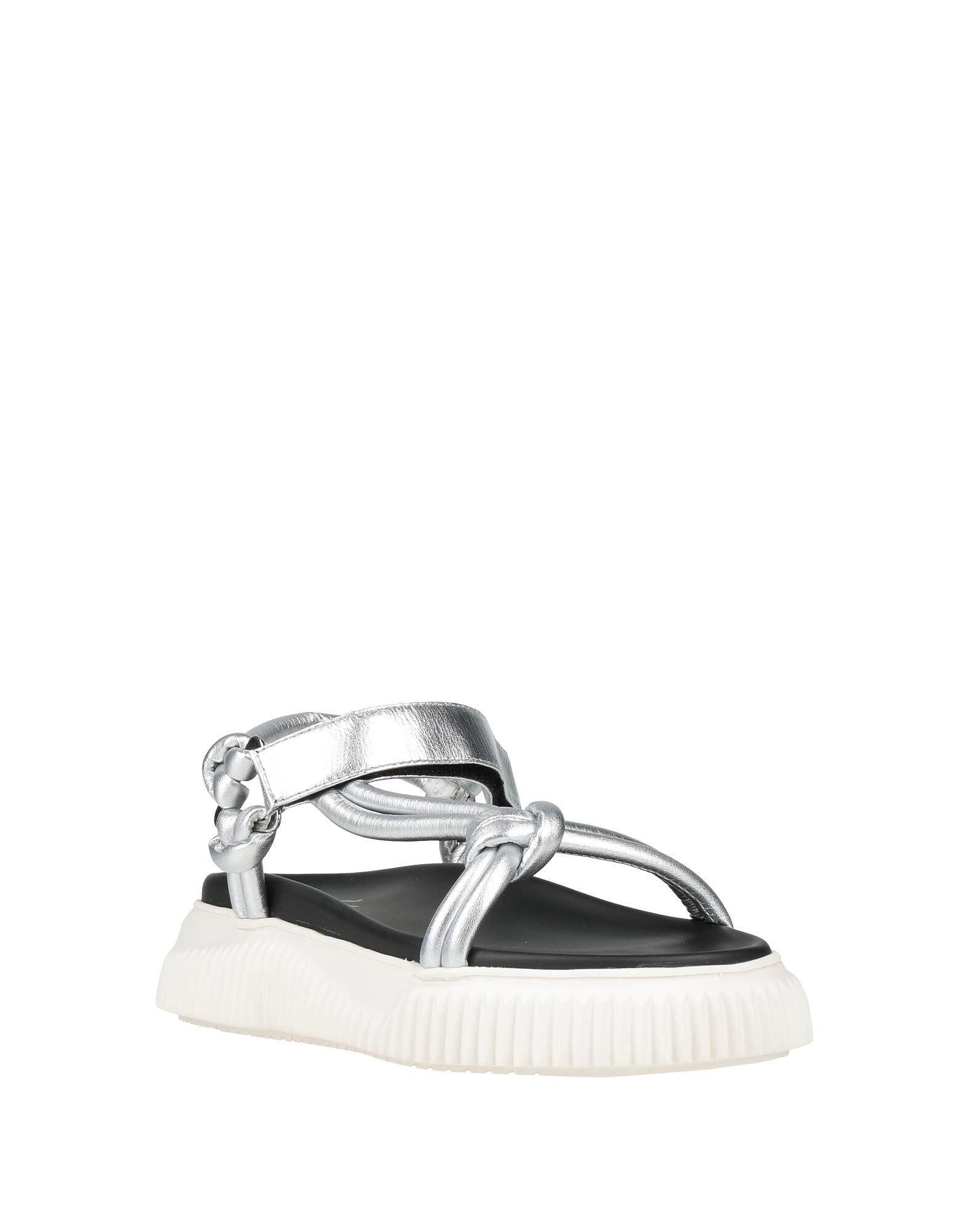 Технические сандалии, кожа, металлик, однотонные, логотип бренда, кожаная подкладка, застежка на липучке, круглый носок, платформа, резиновая рифленая подошва, содержат нетекстильные части животного происхождения