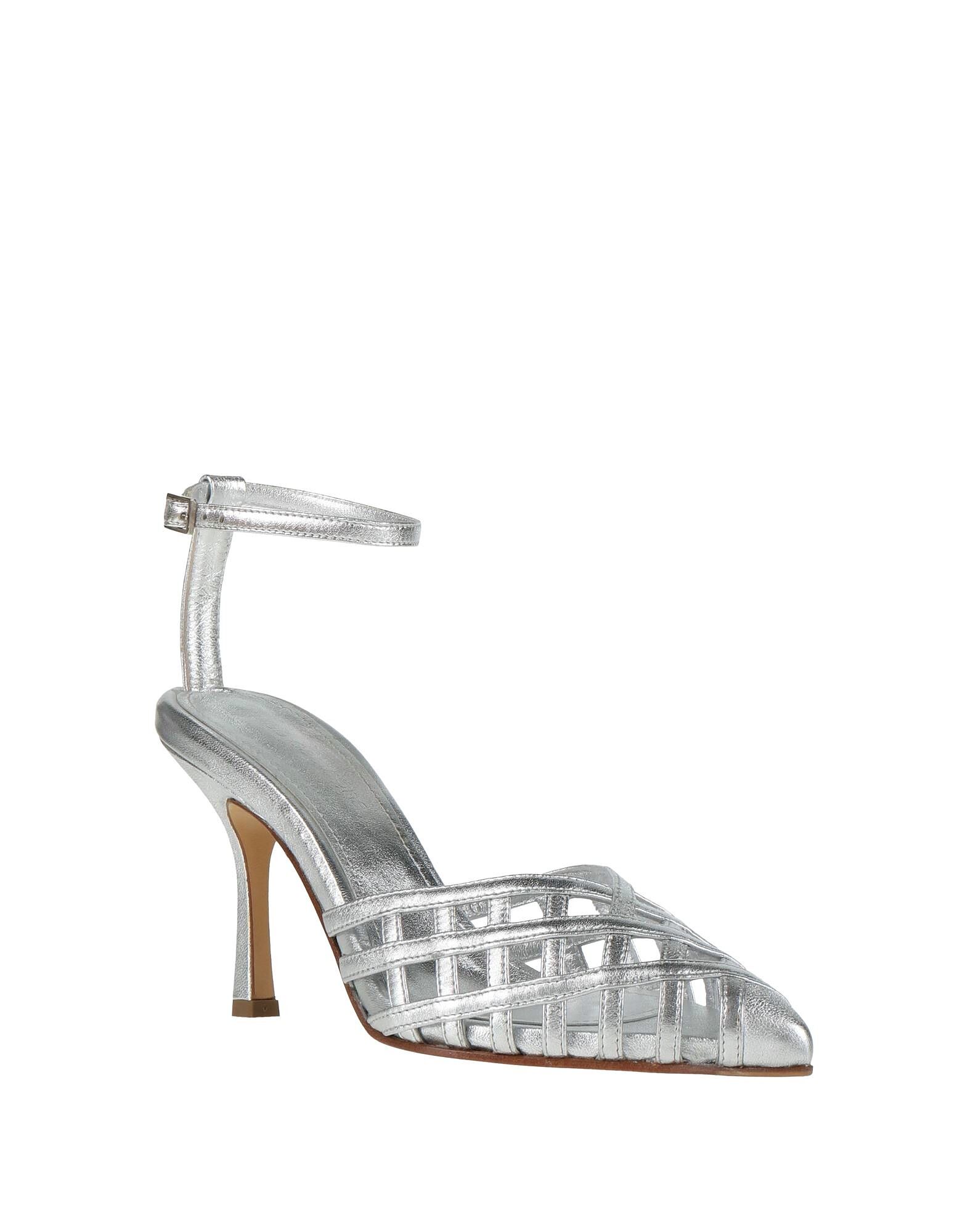 Туфли-лодочки, кожаные, с металлическим блеском, однотонные, с вырезом, ремешок на щиколотке с пряжкой, заостренный носок, шпилька, кожаная/резиновая подошва, кожаная подкладка, содержат нетекстильные части животного происхождения, маленький размер