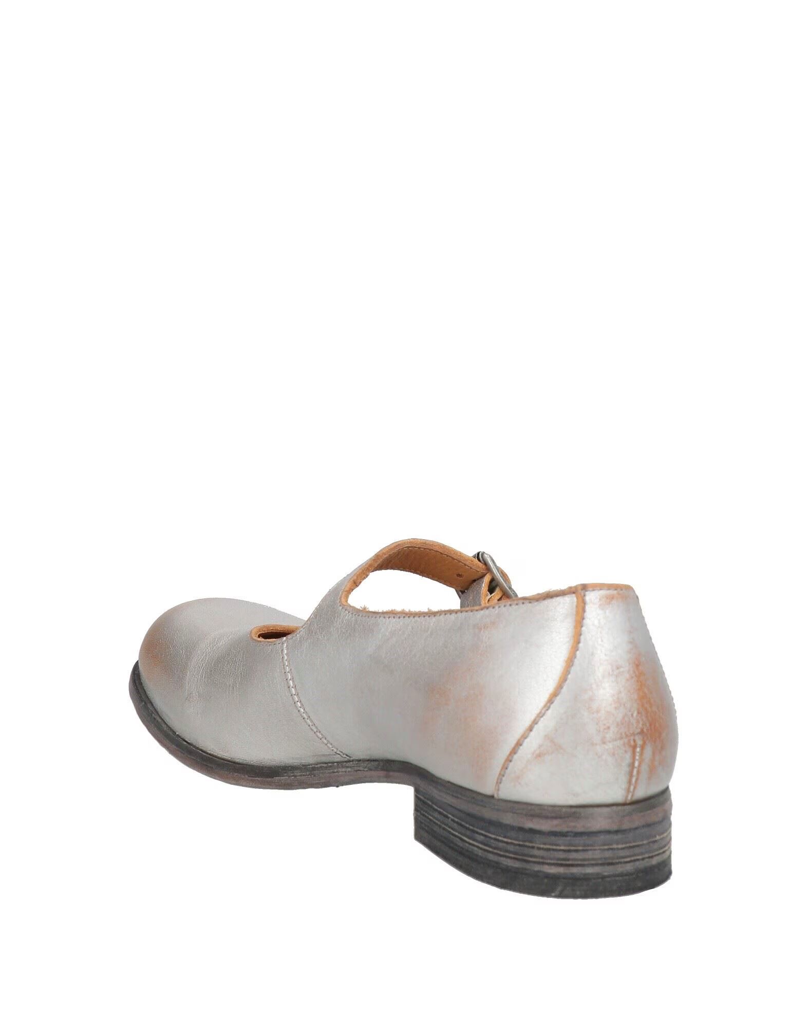 Балетки «Мэри Джейн», кожаные, с эффектом потертости, с металлическим блеском, однотонные, без аппликаций, застежка на пряжку, круглый носок, кожаная/резиновая подошва, кожаная подкладка, содержат нетекстильные части животного происхождения, большой размер