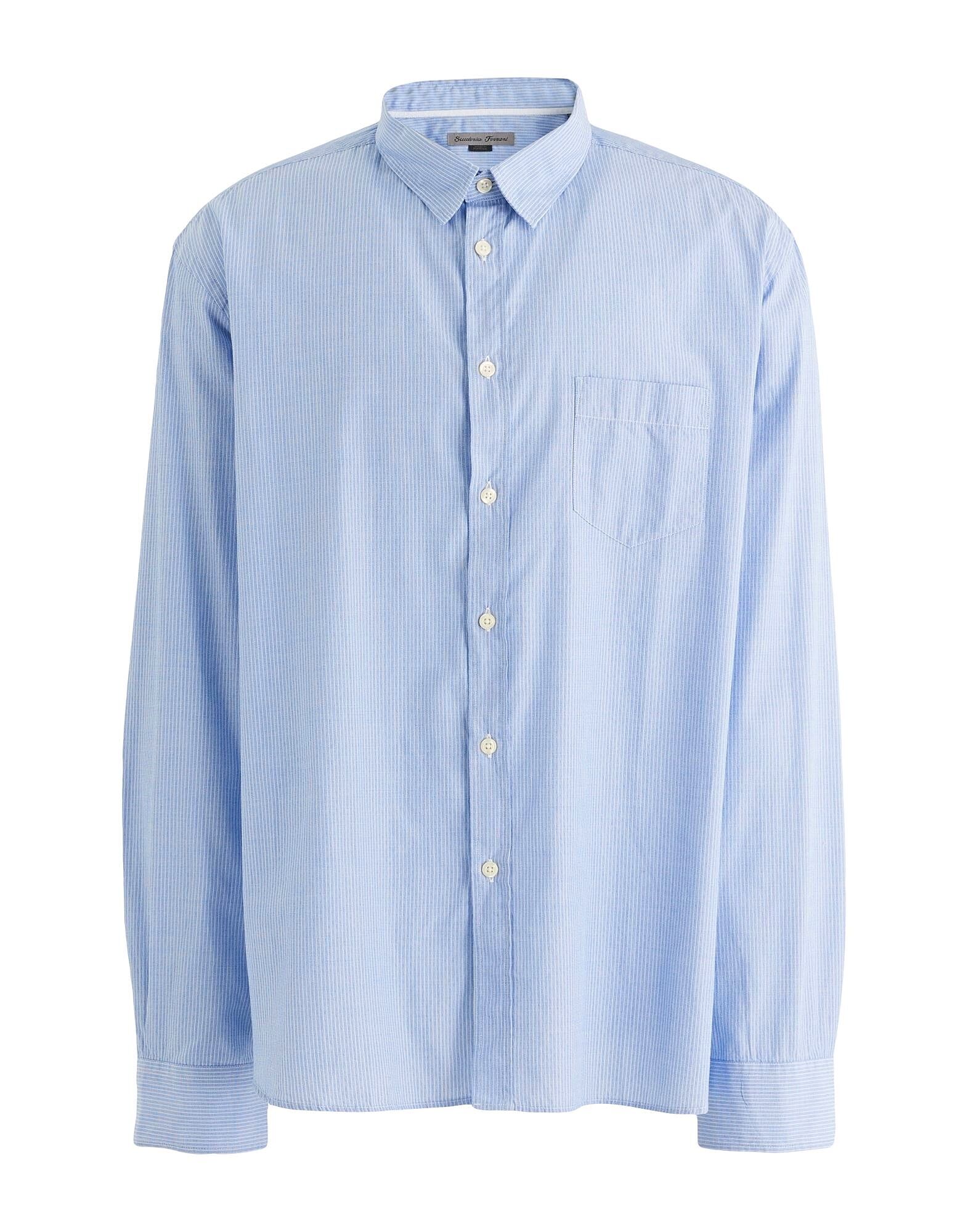Ткань, без аппликаций, полосатая, классический воротник, длинные рукава, манжеты на пуговицах, застежка на пуговицы, один нагрудный карман, рубашка стандартного кроя