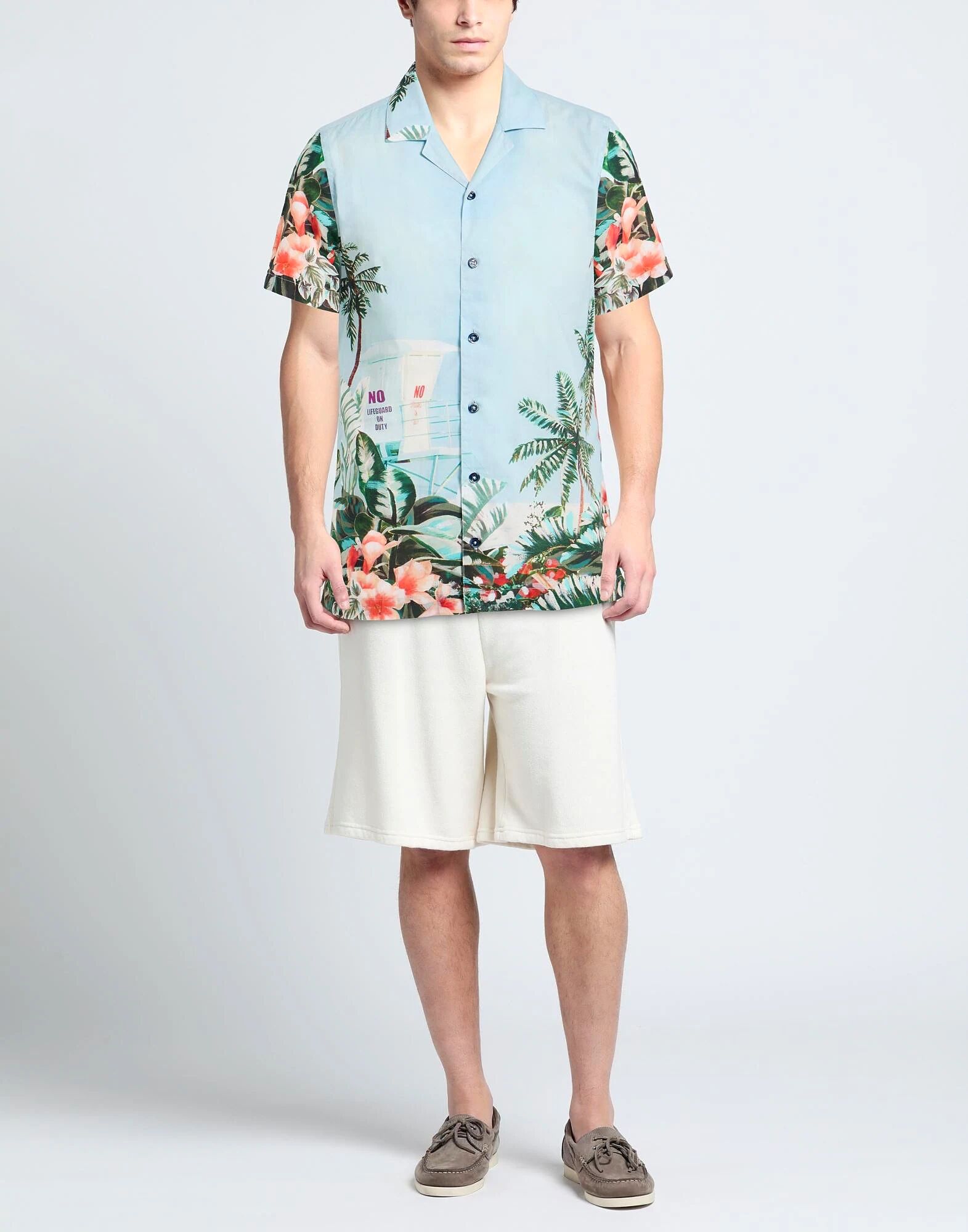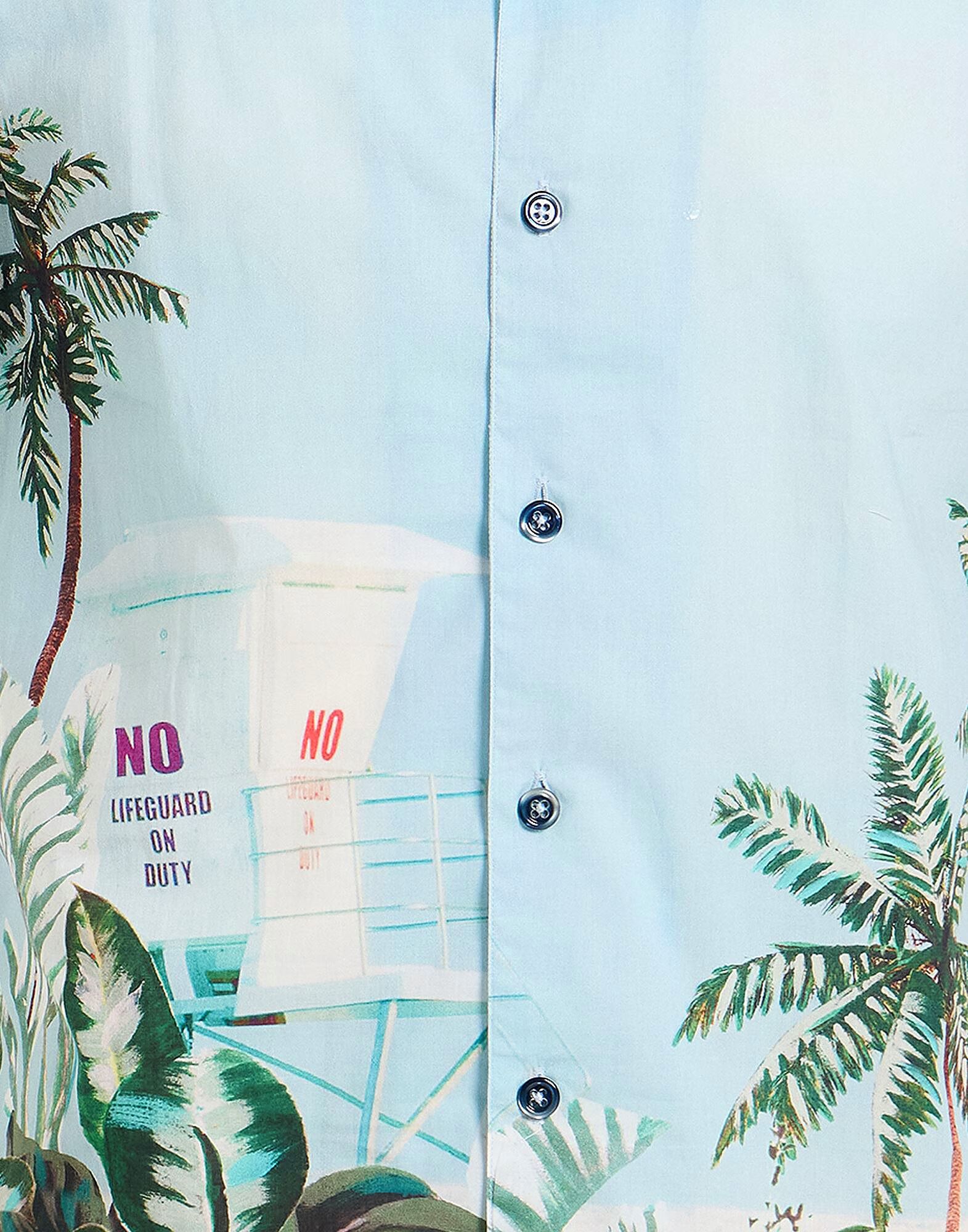 Рубашка стандартного кроя, тканая, с гавайским принтом, без аппликаций, отложной воротник, короткие рукава, застежка на пуговицы, машинная стирка или химчистка, не отбеливать, не сушить в сушильной машине