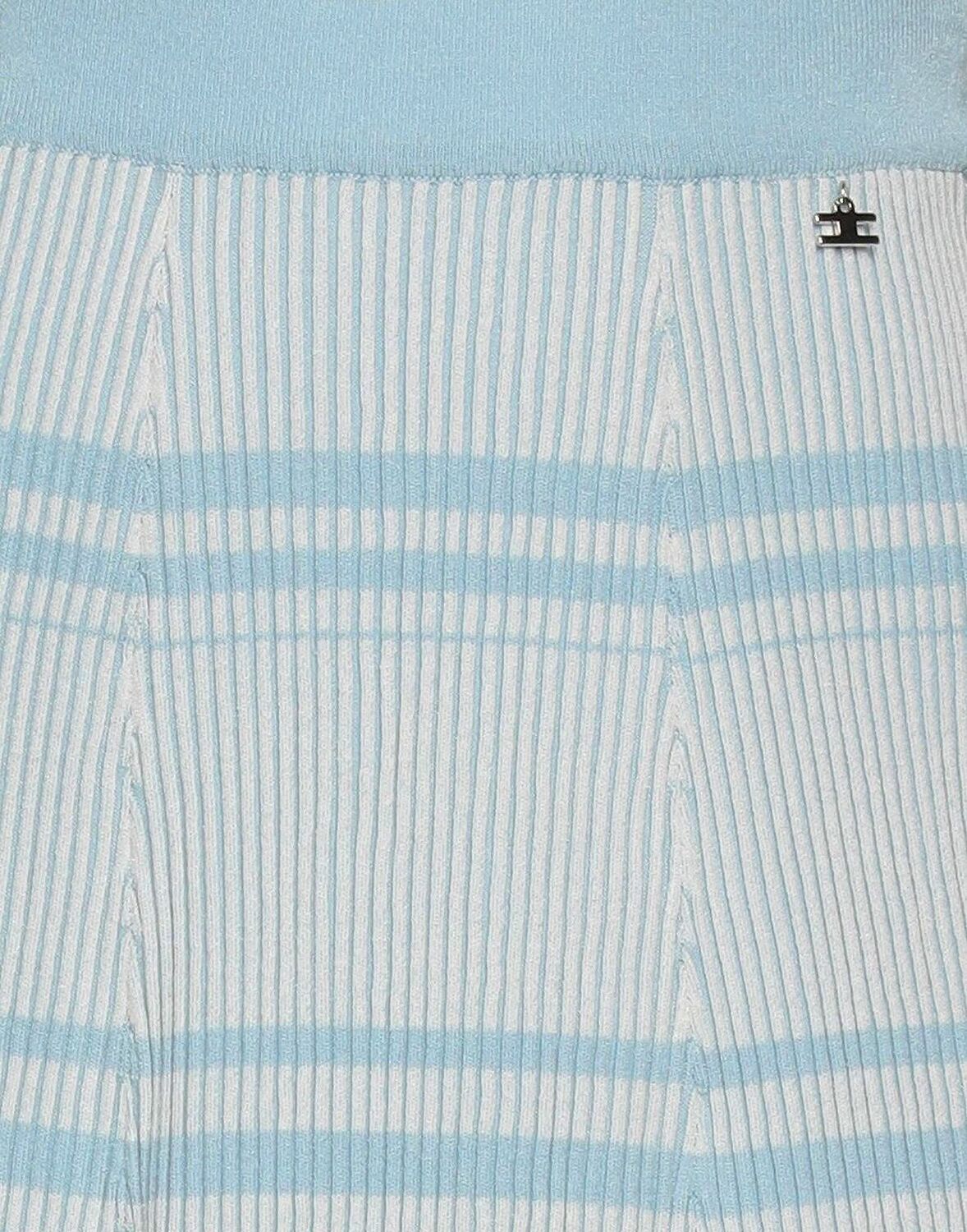 Вязаная, легкая трикотажная юбка с логотипом бренда, в полоску, без карманов, расклешенная
