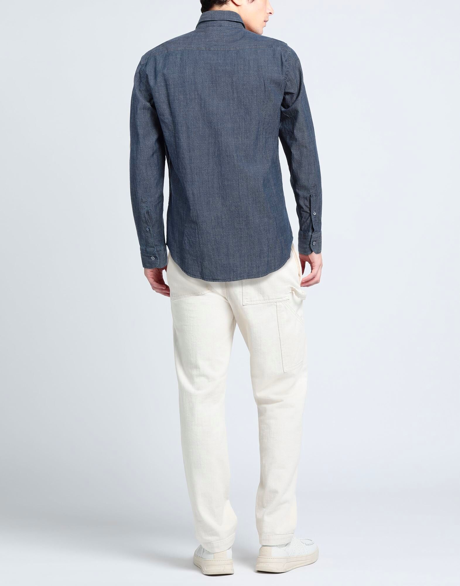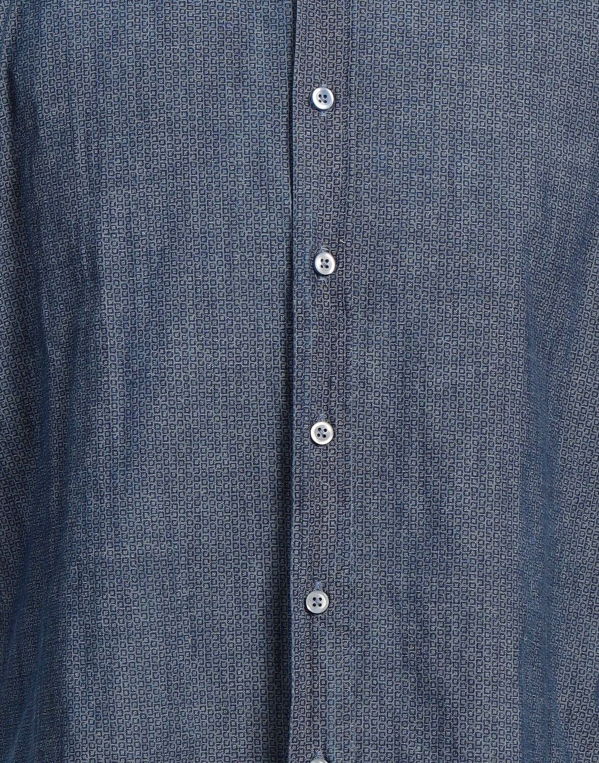 Рубашка приталенного кроя, шамбре, геометрический принт, без аппликаций, классический воротник, длинные рукава, застежка на пуговицы, машинная стирка или химчистка, не отбеливать, не сушить в сушильной машине