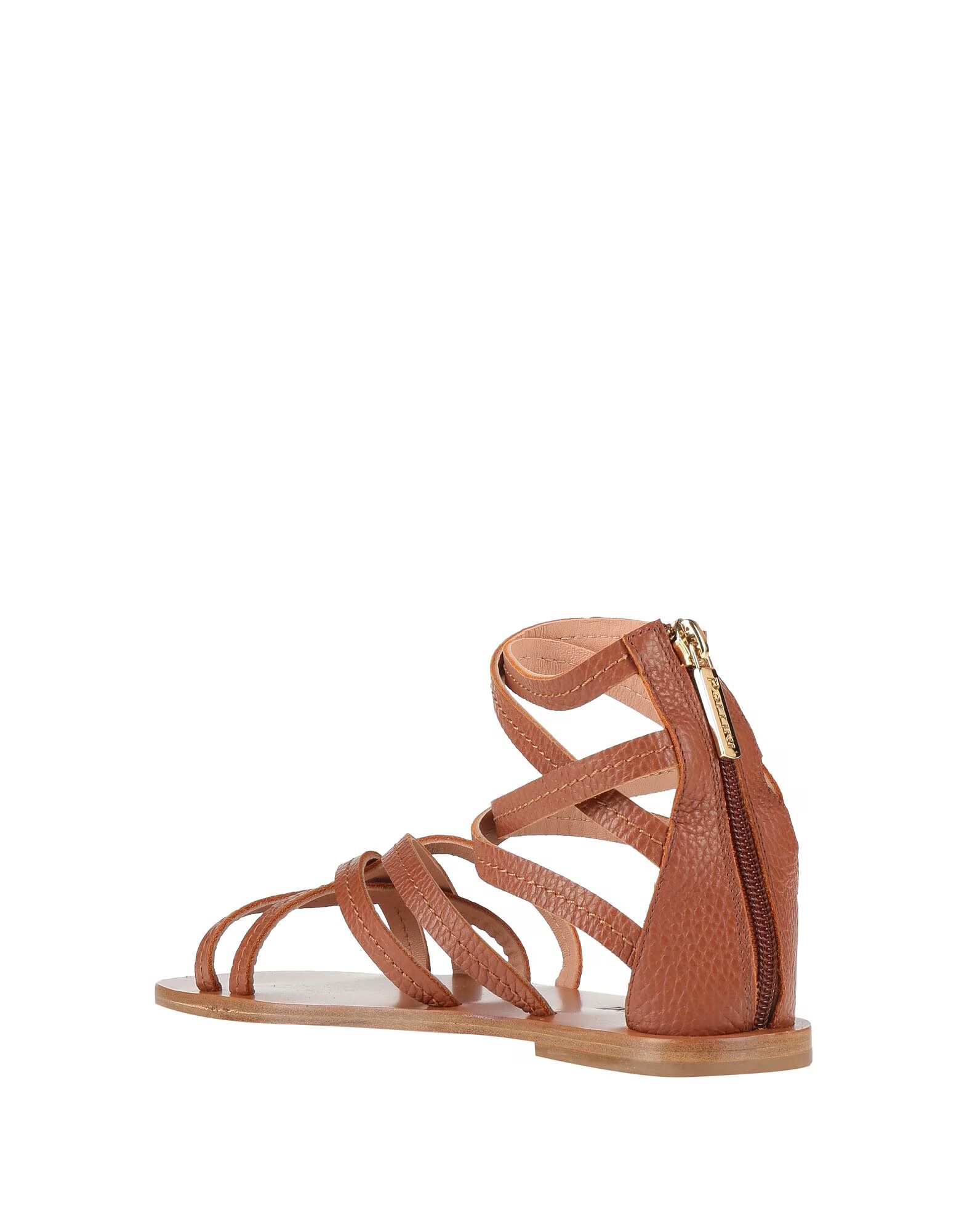 Гладиаторские сандалии, зернистая кожа, однотонные, без аппликаций, кожаная подкладка, застежка-молния, квадратный носок, плоская подошва, кожаная подошва, содержат нетекстильные части животного происхождения