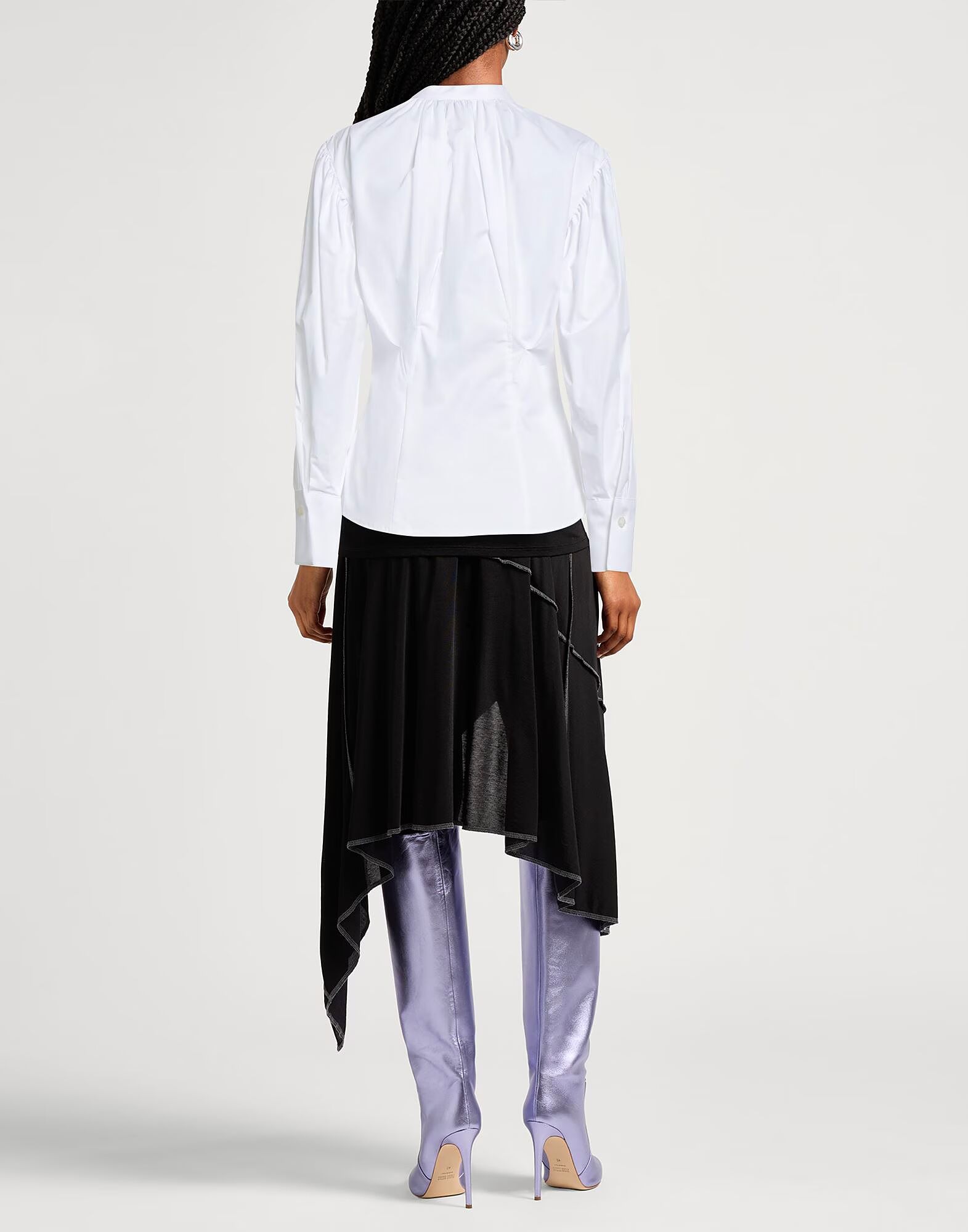 Топ, тканый, однотонный, без аппликаций, круглый вырез, длинные рукава, манжеты на пуговицах, 1 пуговица, ручная стирка, не отбеливать, не сушить в сушильной машине