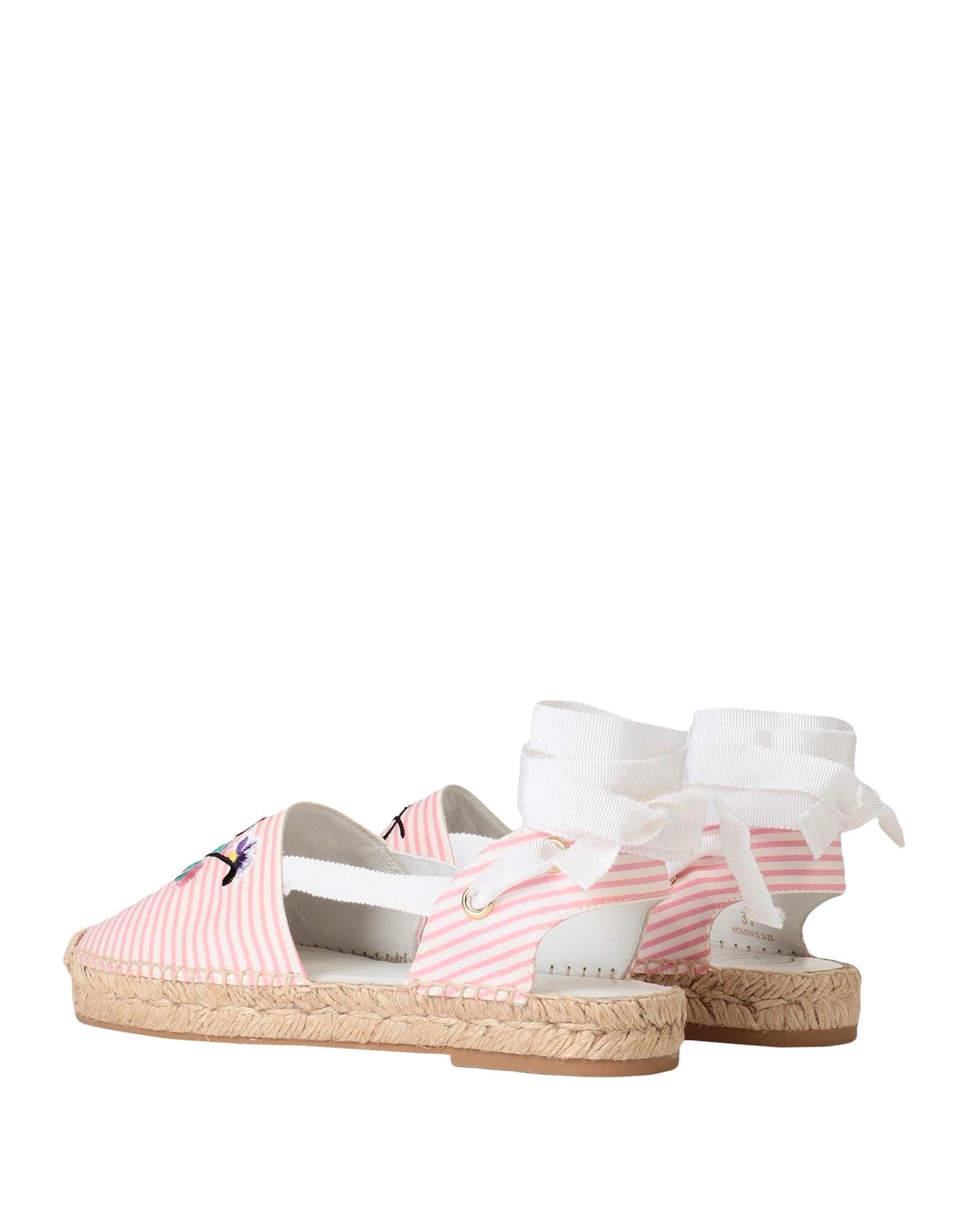 Эспадрильи, из грогрена, тканые, полосатые, вышитые, украшенные, с завязками на щиколотке, с закругленным носком, на плоской подошве, на каблуке-веревке, с резиновой подошвой, с кожаной подкладкой, содержат нетекстильные части животного происхождения
