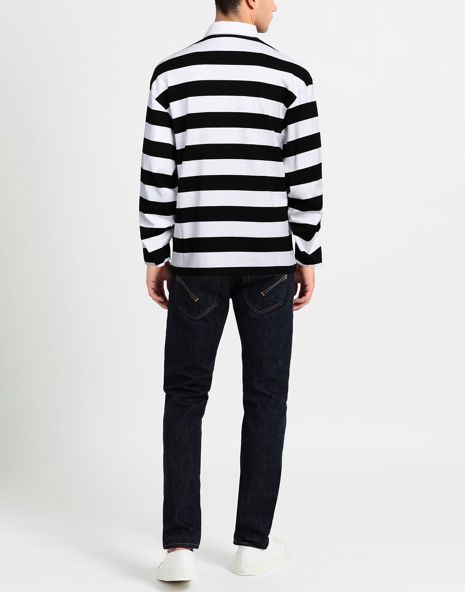 Трикотажное полотно, легкая вязка, полосатый узор, вышитый логотип, воротник на пуговицах, длинные рукава, машинная стирка, не отбеливать, не сушить в сушильной машине
