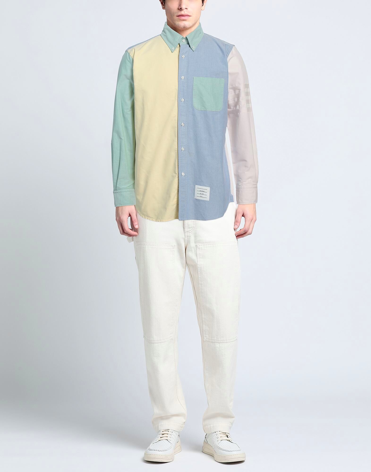 Рубашка стандартного кроя, шамбре, многоцветная, с логотипом бренда, воротник на пуговицах, длинные рукава, застежка на пуговицы, один нагрудный карман, машинная стирка, не отбеливать, сушить в сушилке