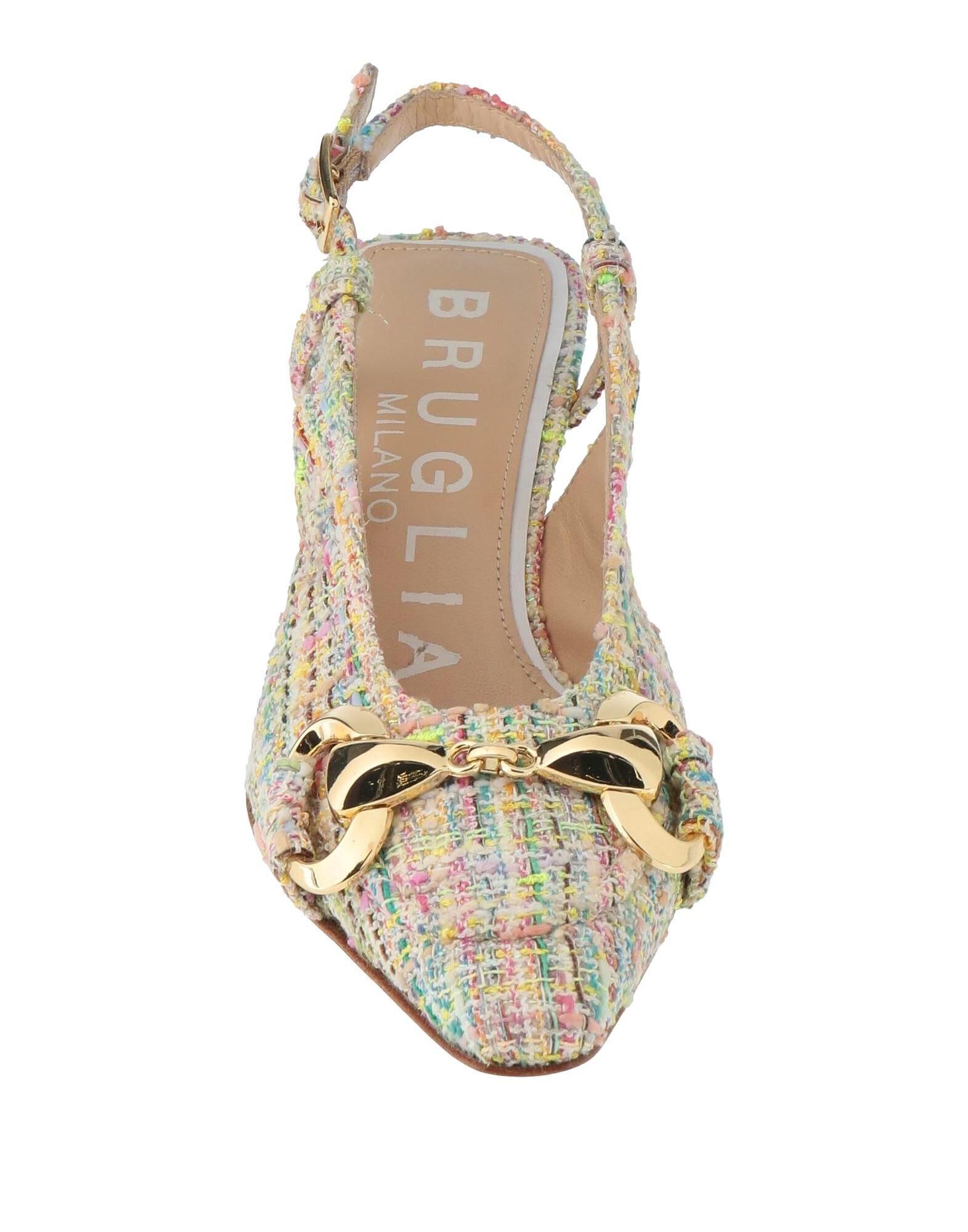 Туфли-лодочки с открытой пяткой, твид, разноцветные, украшенные, с застежкой-пряжкой, заостренный носок, металлизированный каблук, кожаная подошва, кожаная подкладка, содержат нетекстильные части животного происхождения