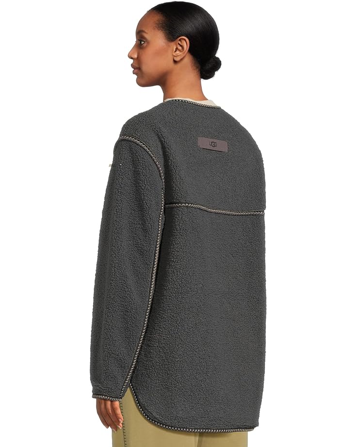 • Куртка UGG Emmersyn Uggbraid, изготовленная из мягкого флиса, - незаменимый элемент вашего гардероба для холодной погоды. Она имеет круглый вырез горловины, центральную планку с застежками на кнопках с логотипом UGG, приспущенные плечи, длинные рукава, наклонные накладные карманы и закругленный асимметричный низ.