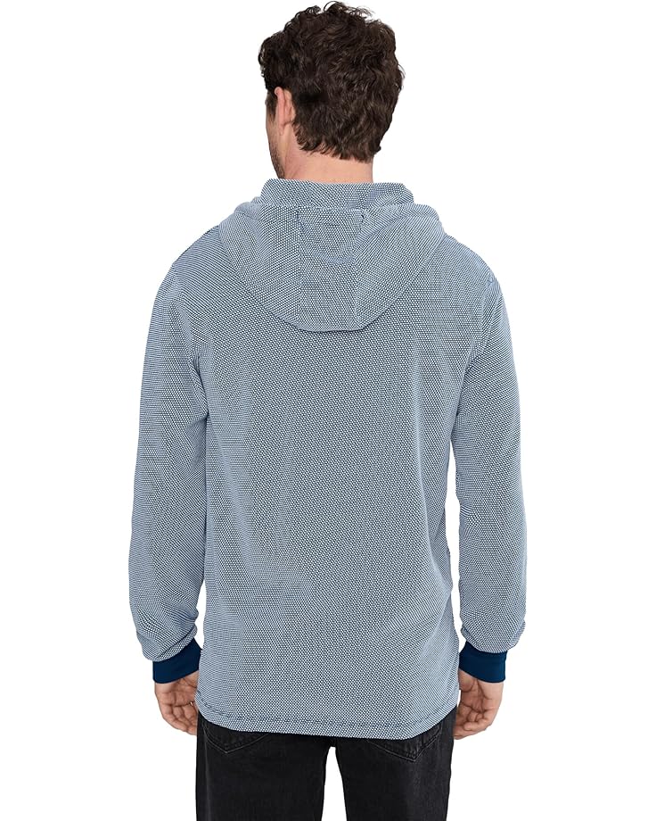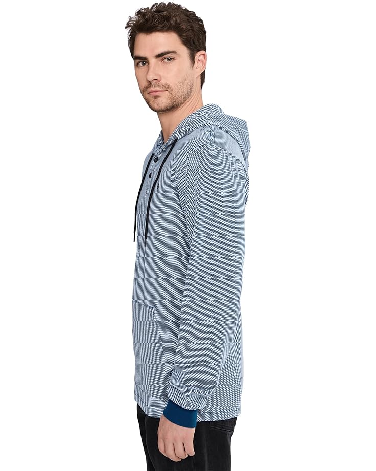 • Согрейте себя и выглядите свежо с помощью облегающей термофутболки для максимального комфорта. Модель имеет прикрепленный капюшон, застежку на пуговицах спереди, шнурки, длинные рукава с ребристыми манжетами и передний карман-кенгуру.