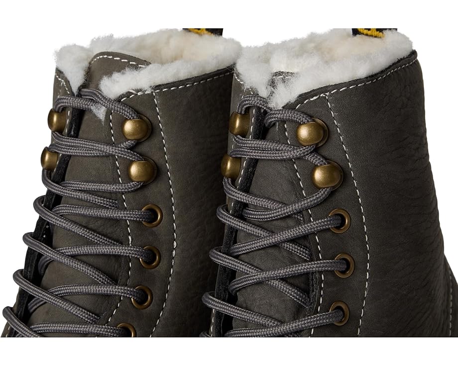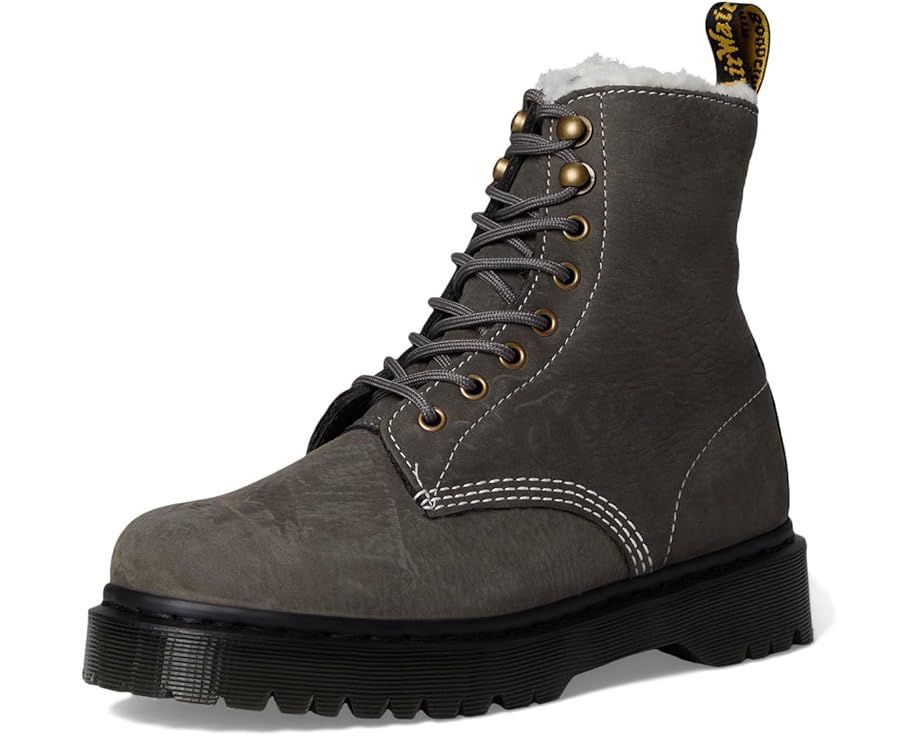 • Мягкие по своей сути, прочные по природе. Ботинки Dr. Martens 1460 Pascal Bex Fl усилены влагостойким текстилем, созданным для любых погодных условий. Внутри имеется подкладка WarmWair из искусственного меха, защищающая от холода. Верхняя часть выполнена из водостойкой нубуковой кожи Milled Nubuck с белой строчкой, которая защищает от влаги и обеспечивает комфорт с первого же ношения. Фурнитура цвета античного золота контрастирует с кожей, а силуэт завершают фирменная петля на пятке, черная прострочка по ранту и подошва из поливинилхлорида дымчатого цвета Bex для дополнительной высоты. Эти ботильоны на шнуровке имеют полиэстеровую стельку, которая обеспечивает прохладу и комфорт для ваших ног.
