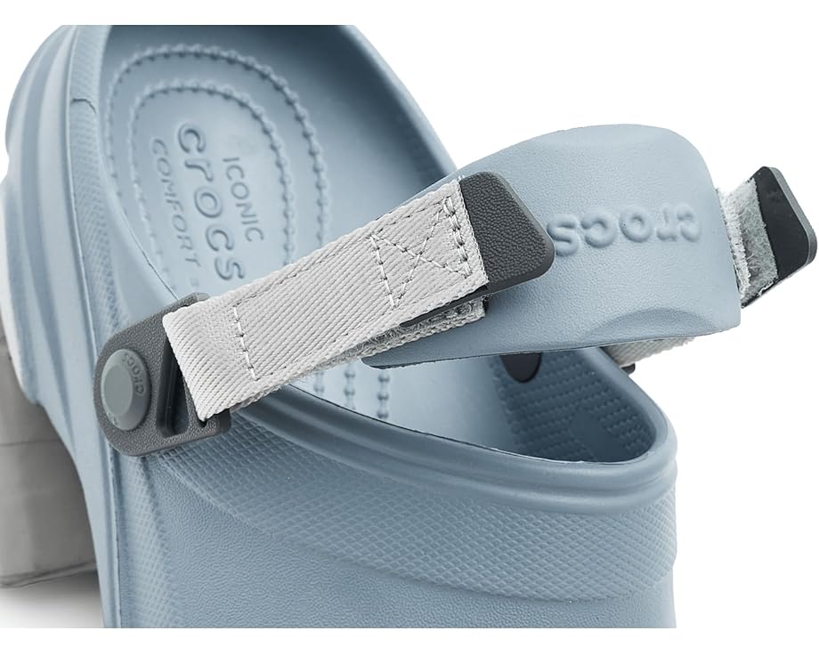 • Путешествия. Исследования. Приключения ближние и дальние. Классические сабо All-Terrain готовы ко всему, даже в самых суровых условиях. Благодаря более прочной подошве и регулируемому ремешку Turbo, земля под ногами еще никогда не казалась такой преодолимой. Легкая конструкция Croslite делает их практичным и компактным выбором для любой поездки. Пора переключиться на полный привод. Застегните ремешок и отправляйтесь навстречу приключениям!