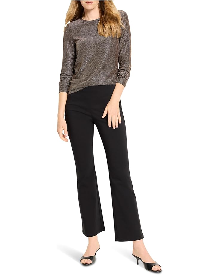 • Этот элегантный трикотажный топ с блестками, облегающим кроем и легкой драпировкой, представляет собой идеальное сочетание элегантности и удобства: комфорт трикотажных топов плюс немного дополнительного блеска. Металлизированная пряжа (не вызывает зуда) идеально сочетается с брюками Wonderstretch: объедините их для создания стильного образа для работы или выхода в свет.