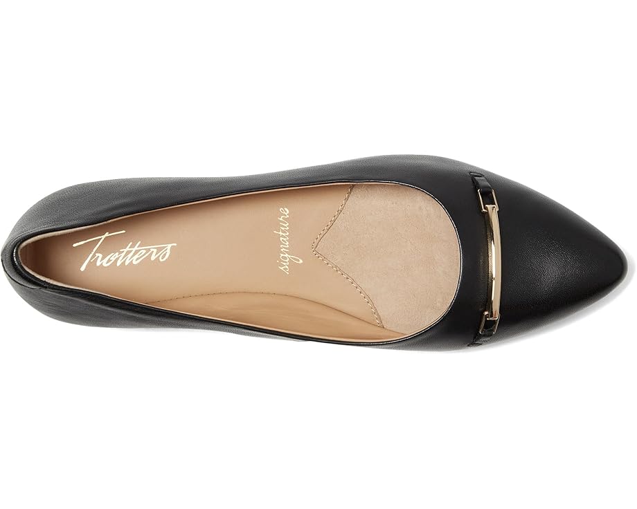 • Туфли Trotters Everly - это изысканный выбор для любого случая, сочетающий элегантный дизайн с практичными функциями. Их силуэт с заостренным носком излучает вневременное очарование, а кожаный верх украшен полированным металлическим акцентом, придающим ему нотку утонченной элегантности. Идеальные для долгих дней, эти балетки оснащены стелькой из пены с эффектом памяти и встроенной поддержкой свода стопы для амортизации каждого шага. Кожаная стелька и подкладка обеспечивают дополнительный комфорт. Легкая резиновая подошва обеспечивает гибкость и устойчивость, что делает их универсальным вариантом для работы, путешествий или повседневных прогулок.