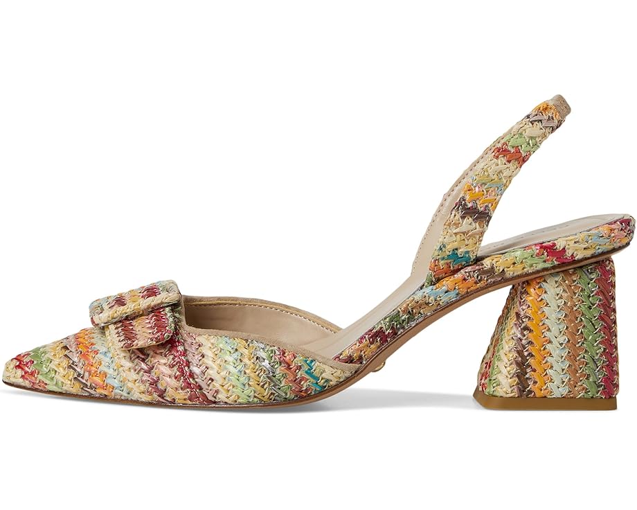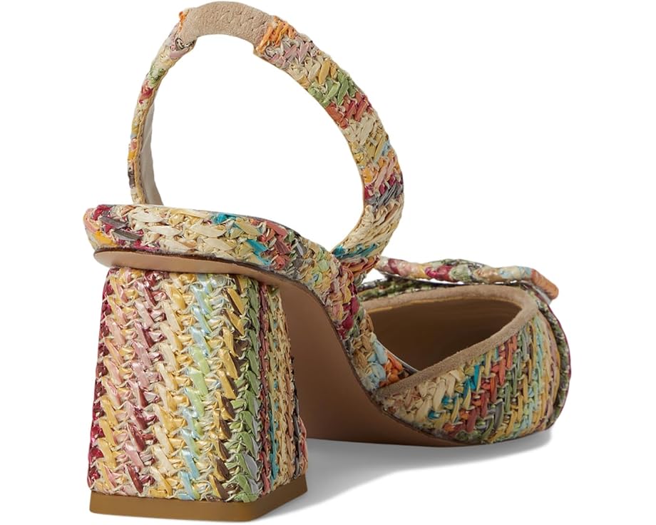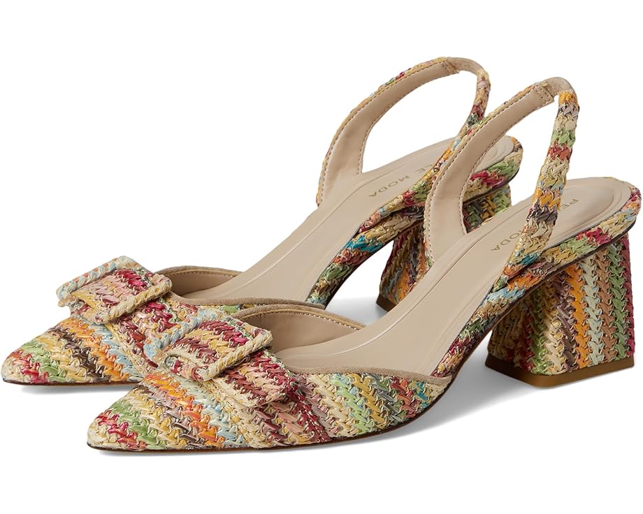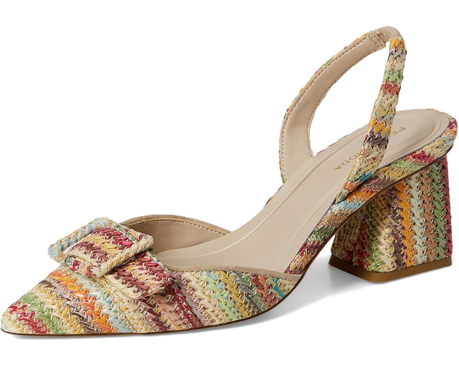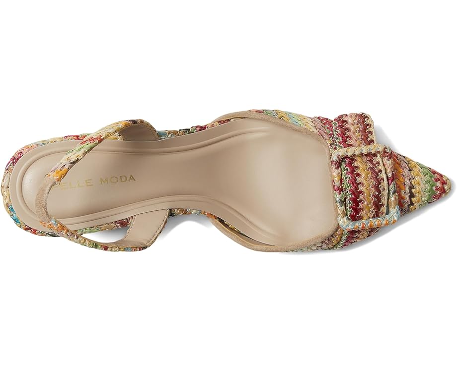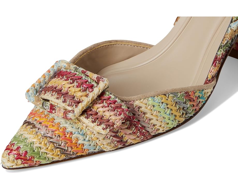 • Туфли-лодочки Pelle Moda Imia 3 с острым носком и многоцветным плетеным крючком верхом имеют завязки на шее с эластичной вставкой для лучшей посадки. Устойчивый каблук, обеспечивающий идеальную поддержку, имеет современные углы, покрытые рафией.