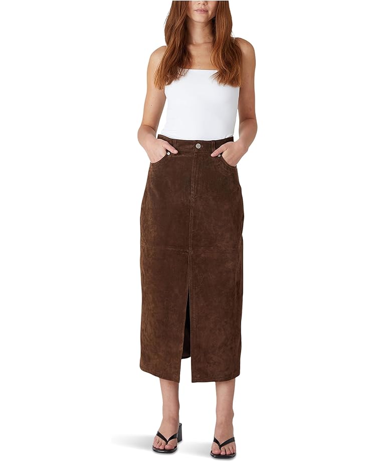 • Обновите свой гардероб стильной юбкой-миди Blank NYC. Эта женская юбка-миди из натуральной замши с пятью карманами имеет среднюю посадку на талии, застежку-молнию и силуэт средней длины с высоким разрезом.