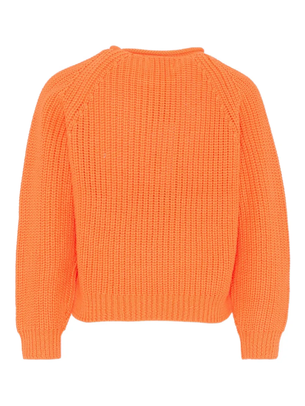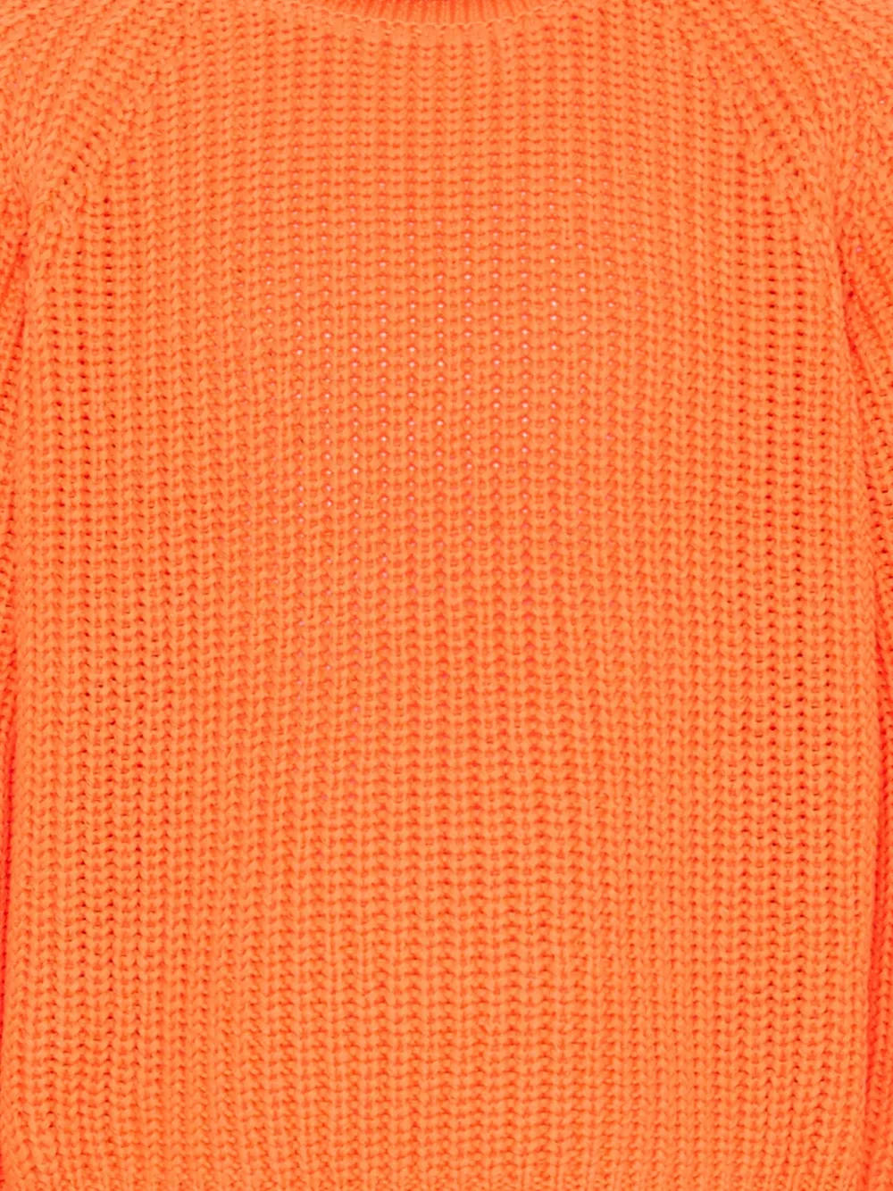 Оранжевый вязаный джемпер с круглым вырезом, длинными рукавами, ребристыми манжетами и ребристым низом