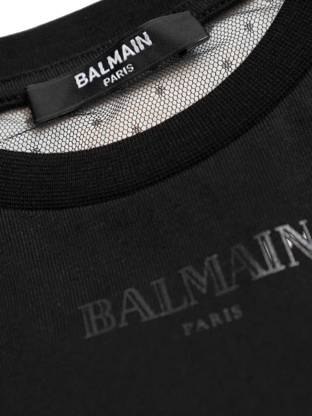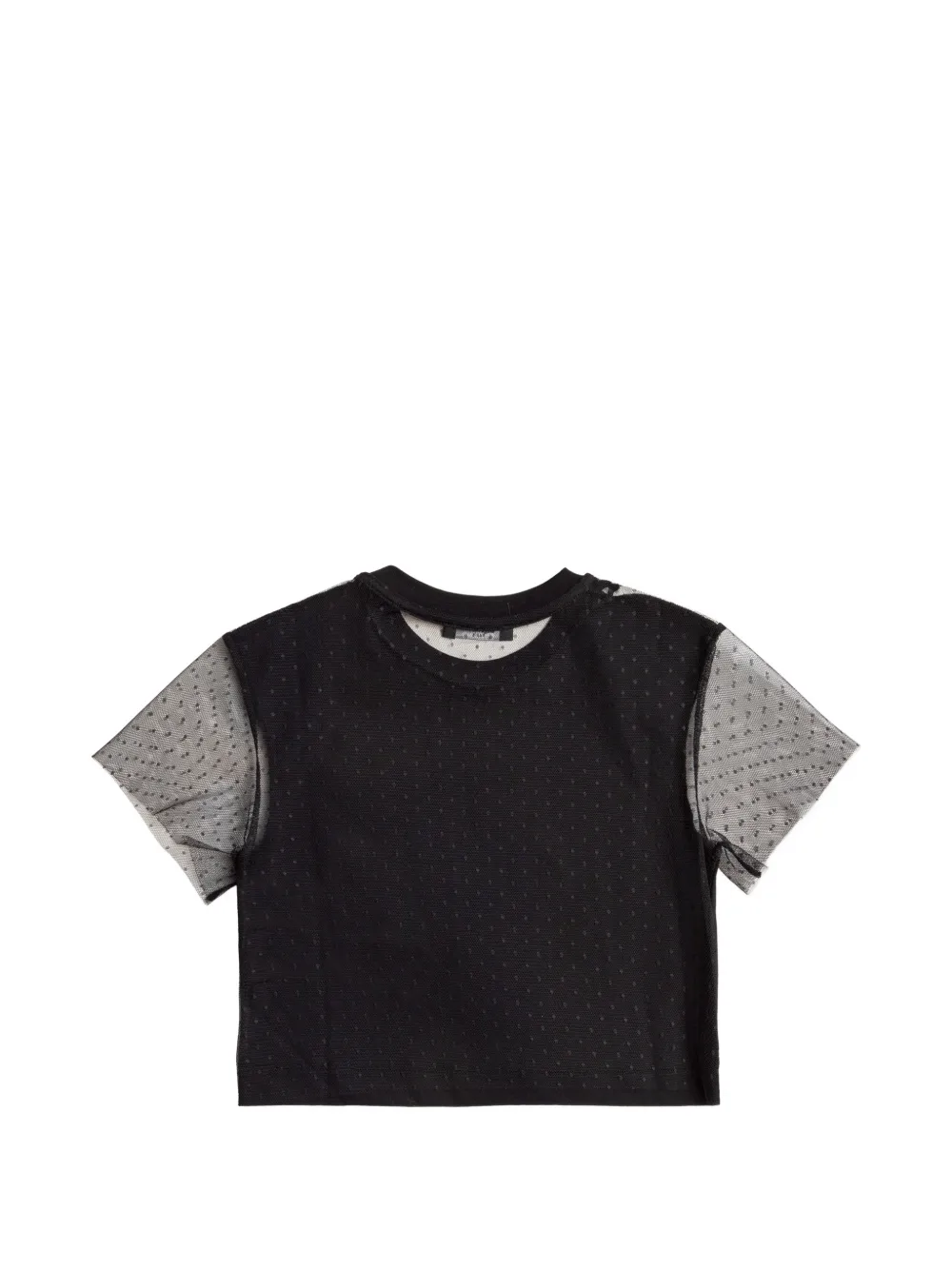 Черные рукава из тюля в горошек, круглый вырез, короткие рукава, укороченный