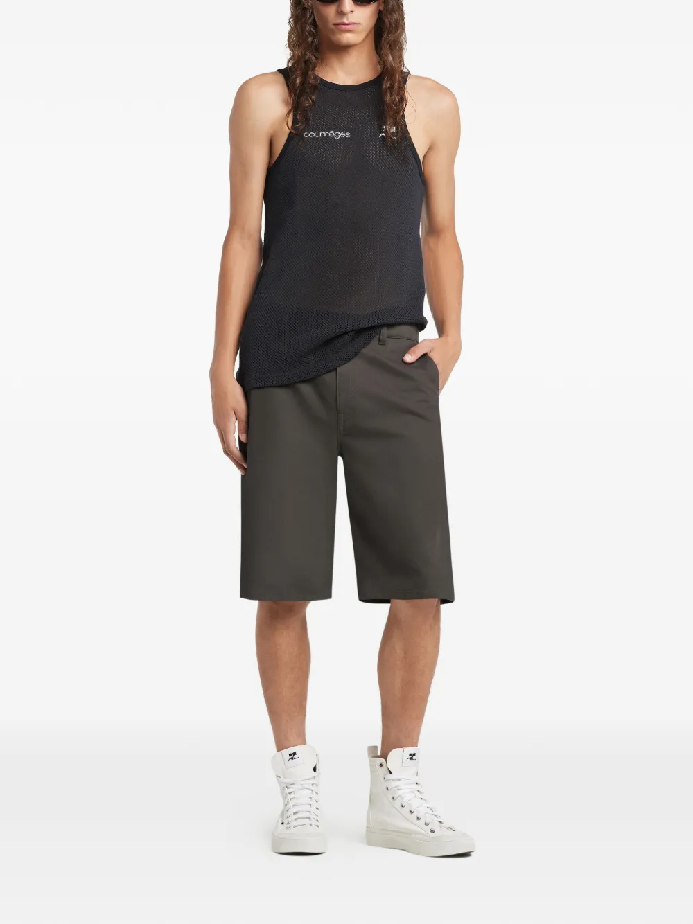 Сетчатый топ с логотипом Courrèges, черный