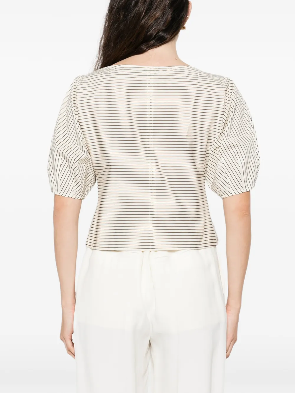 Полосатый топ цвета слоновой кости с вырезом-лодочка и рукавами до локтя