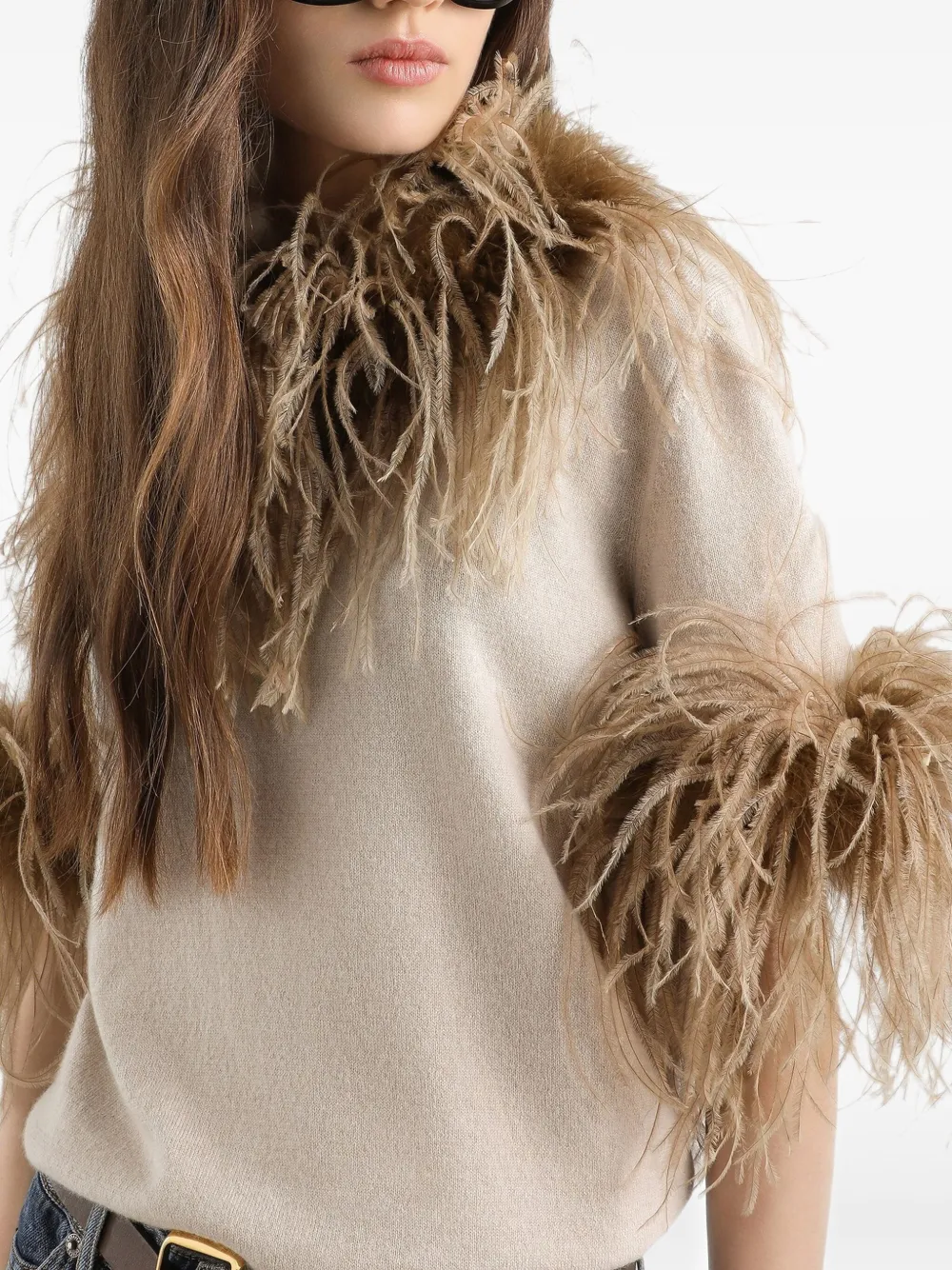Топ с перьями DOLCE & GABBANA, бежевый