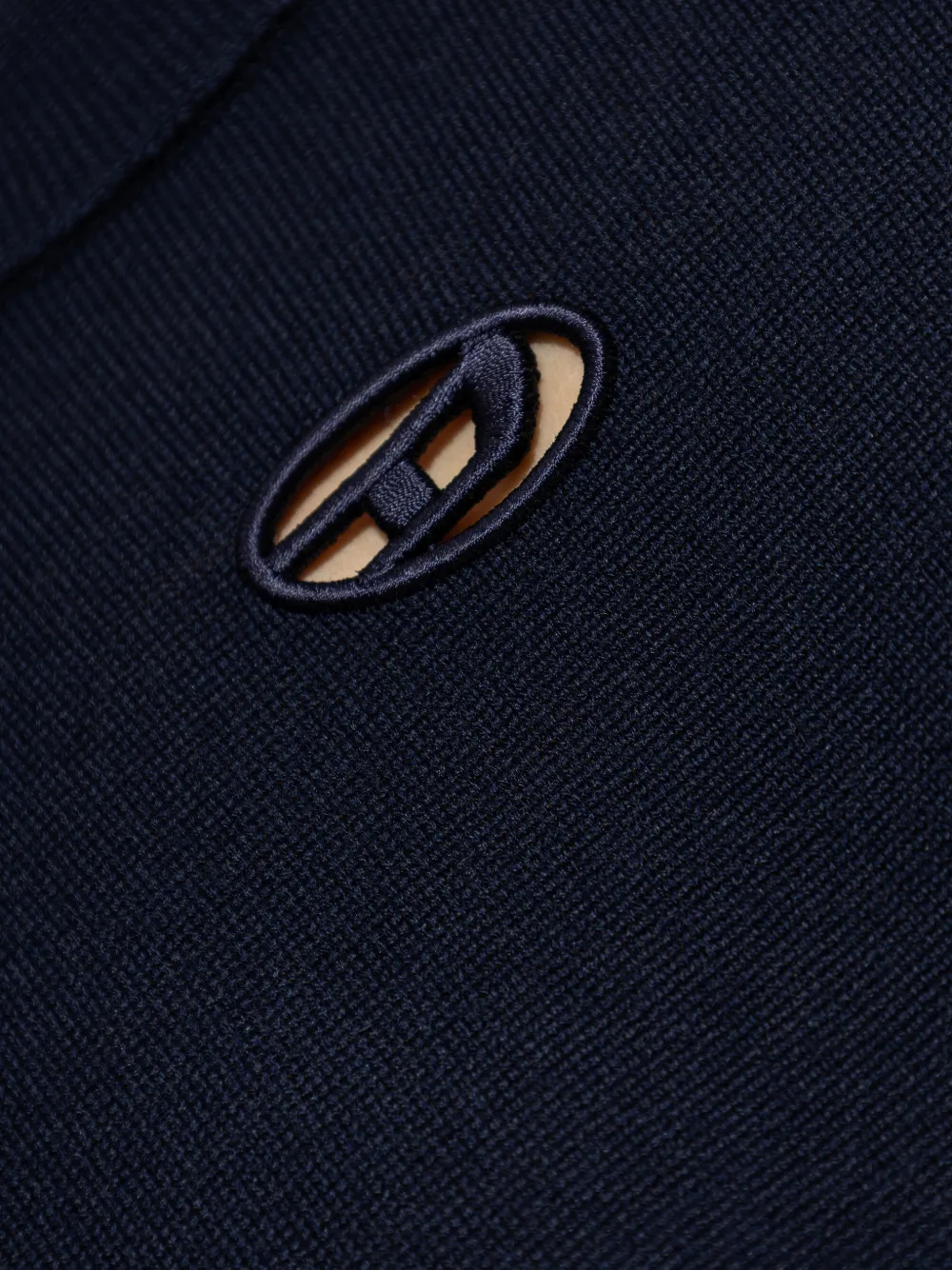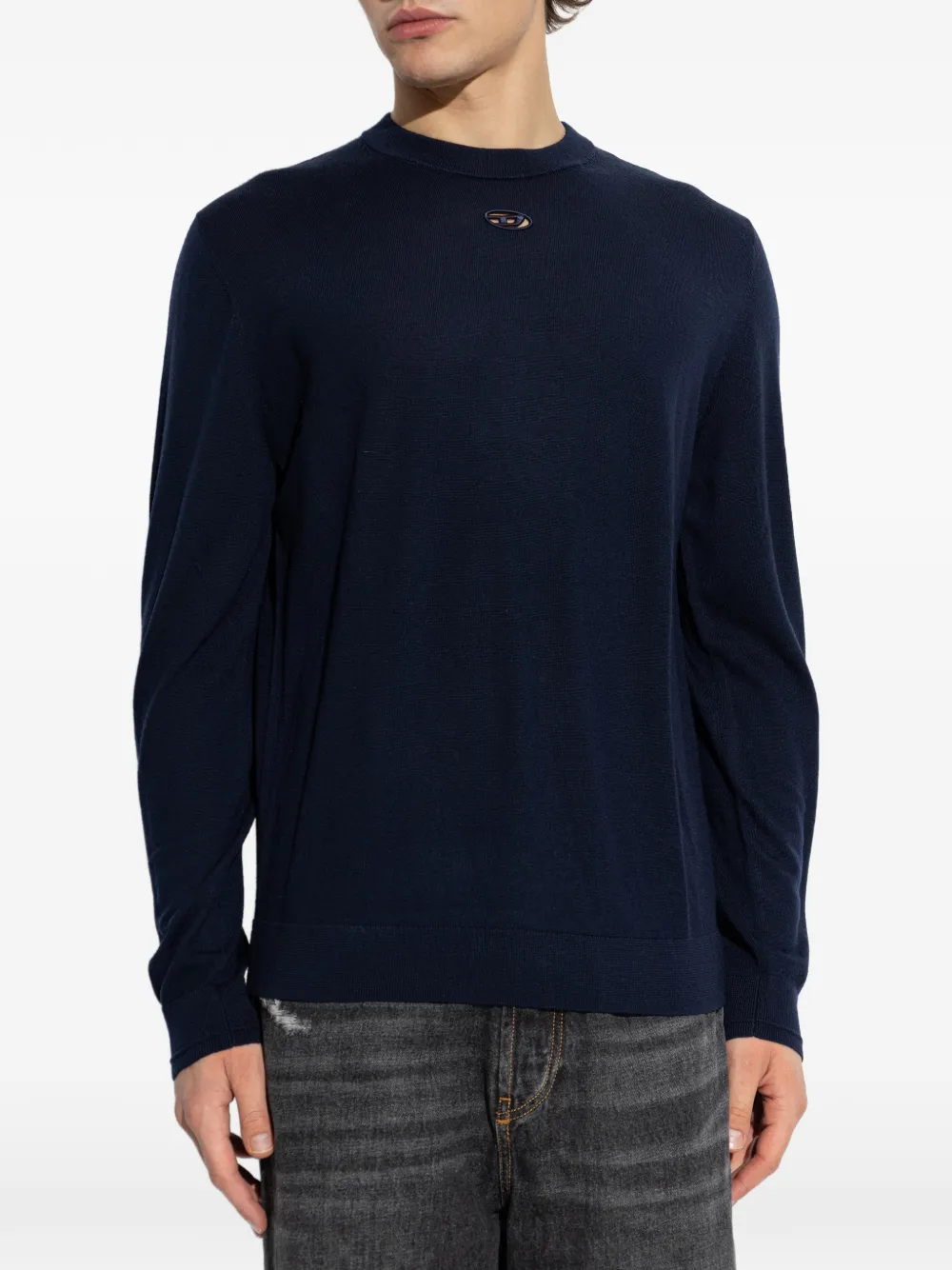 Темно-синий свитер с вышитым логотипом, длинными рукавами, круглым вырезом и прямым низом