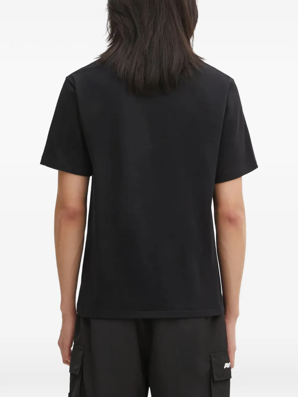 Черная футболка с графическим принтом, деталями с логотипом, круглым вырезом, короткими рукавами и нашивкой с логотипом