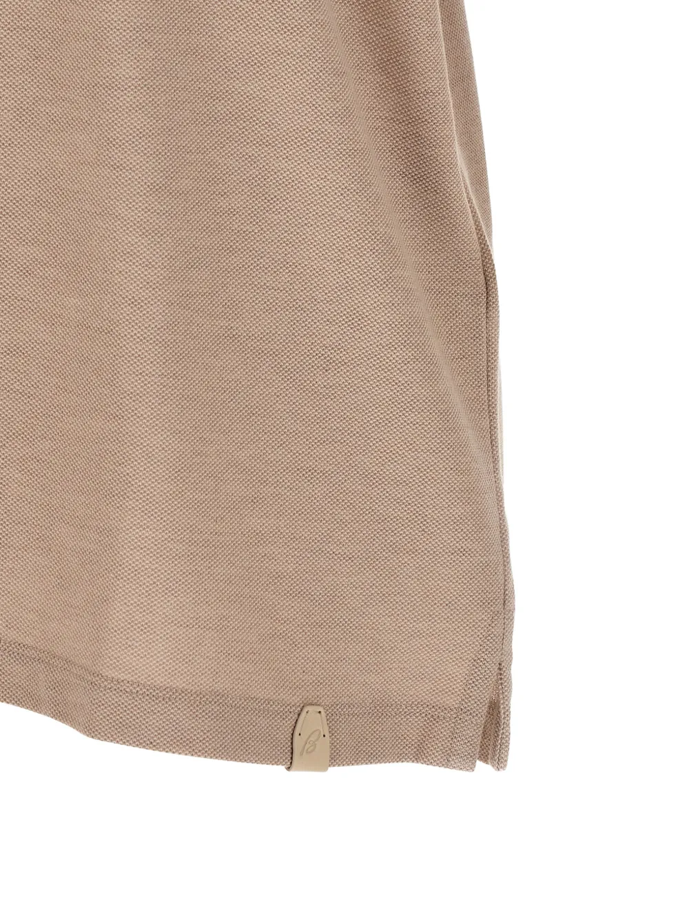 Бежевое поло из пике с нашивкой-логотипом и отложным воротником