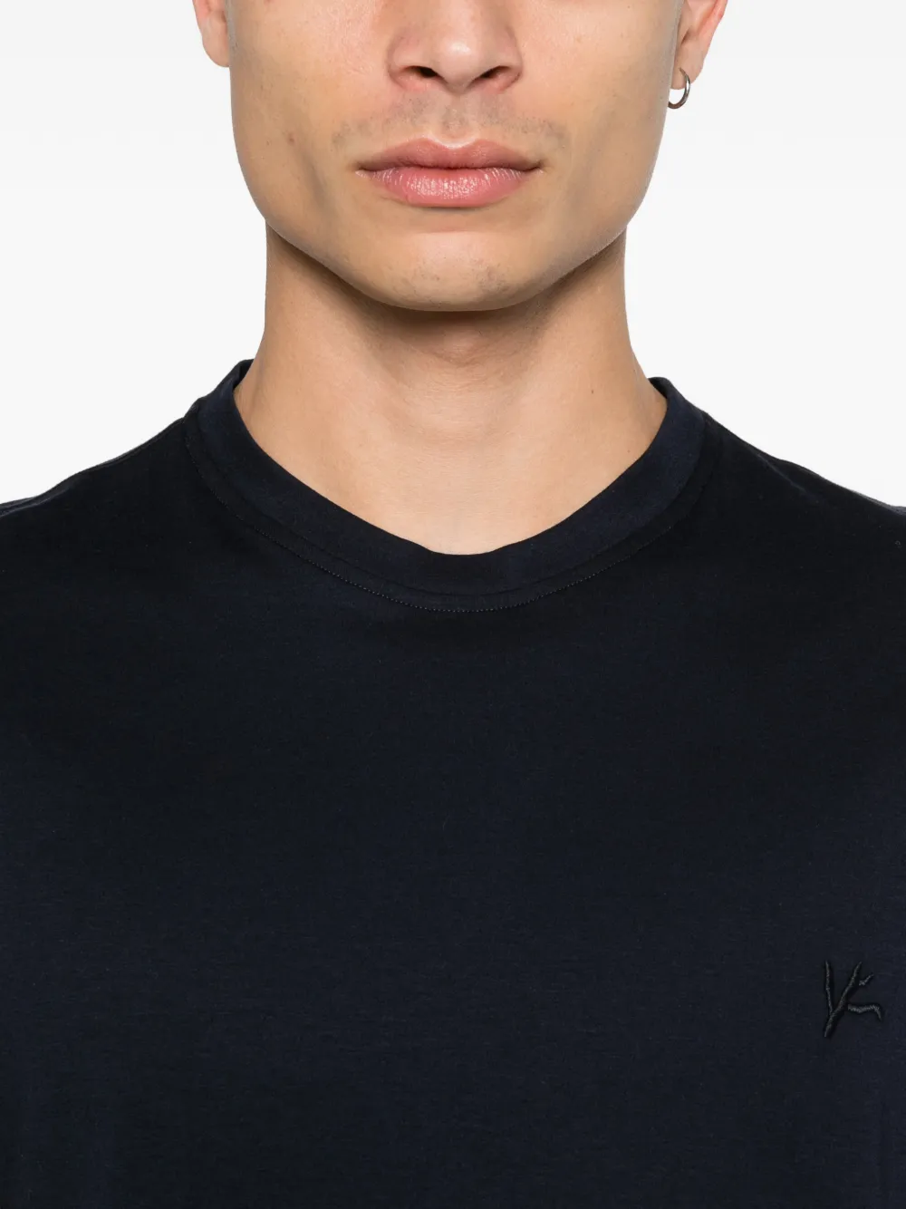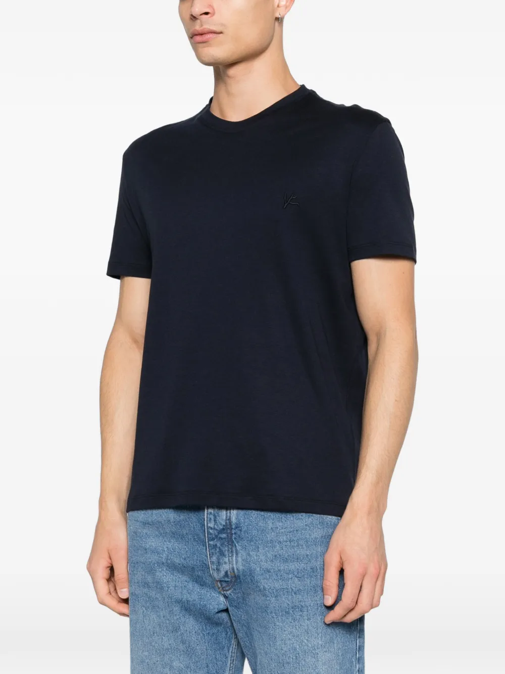 Синий футболка с вышитым логотипом, круглым вырезом и короткими рукавами