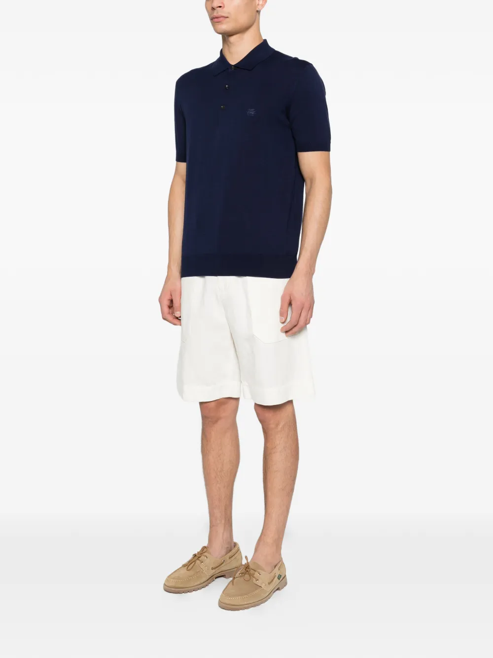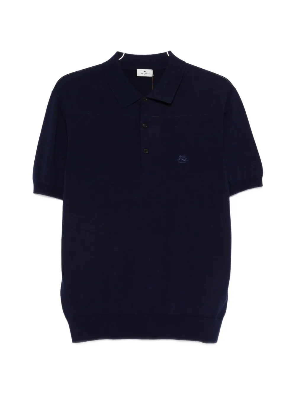 Темно-синяя с вышивкой, короткие рукава, застежка на пуговицы