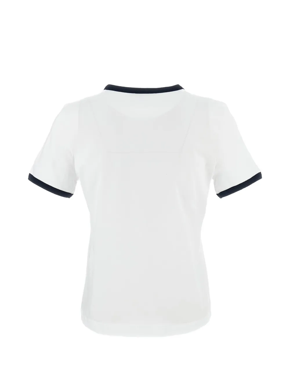 Белая футболка с круглым вырезом, короткими рукавами, тисненым логотипом, облегающего кроя, с контрастной отделкой
