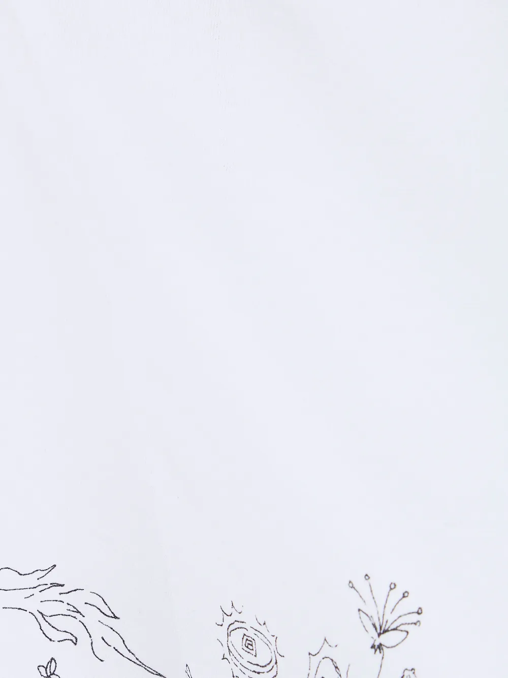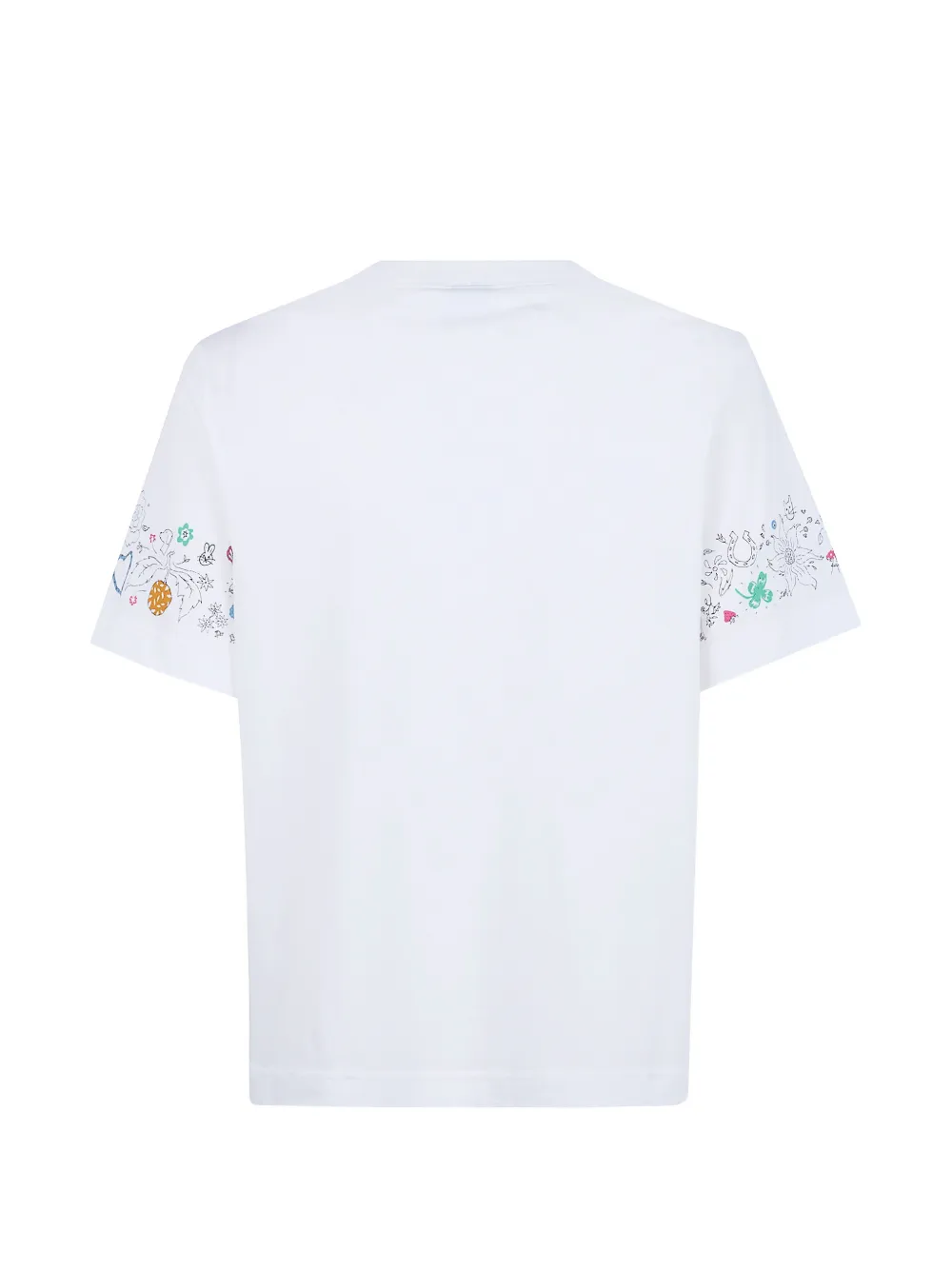 Белая футболка с цветочным принтом, короткими рукавами и круглым вырезом